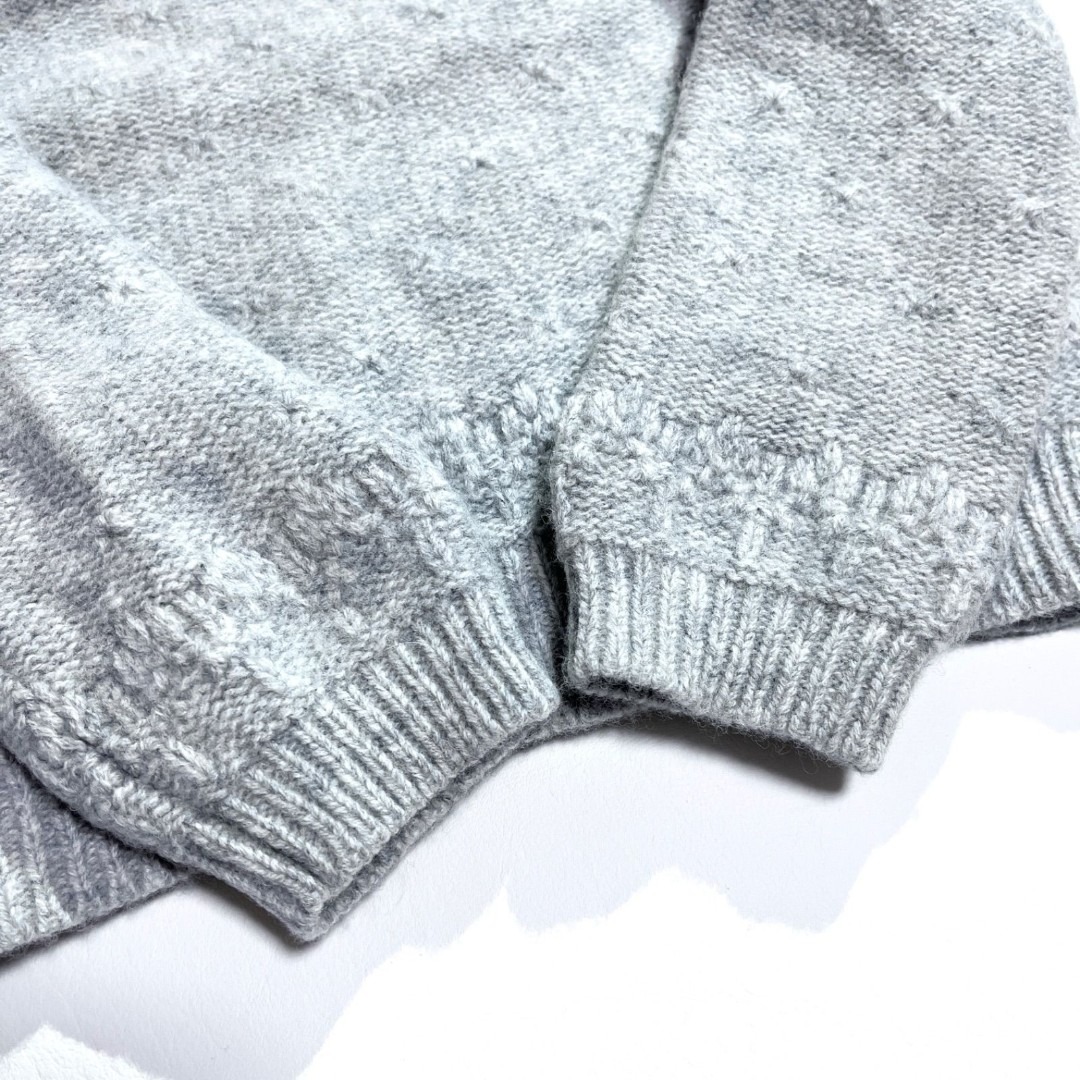 さらに、ケーブル編みを組み合わせたデザインが立体感を生み、シンプルながら存在感ある一着に仕上がっています。