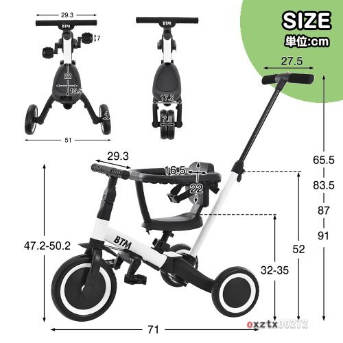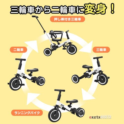 • 【一台5役 長く楽しめる】押し棒付き三輪車三輪車補助輪キックバイクキックバイク二輪車、子供の成長に合わせて様々な機能で使える。