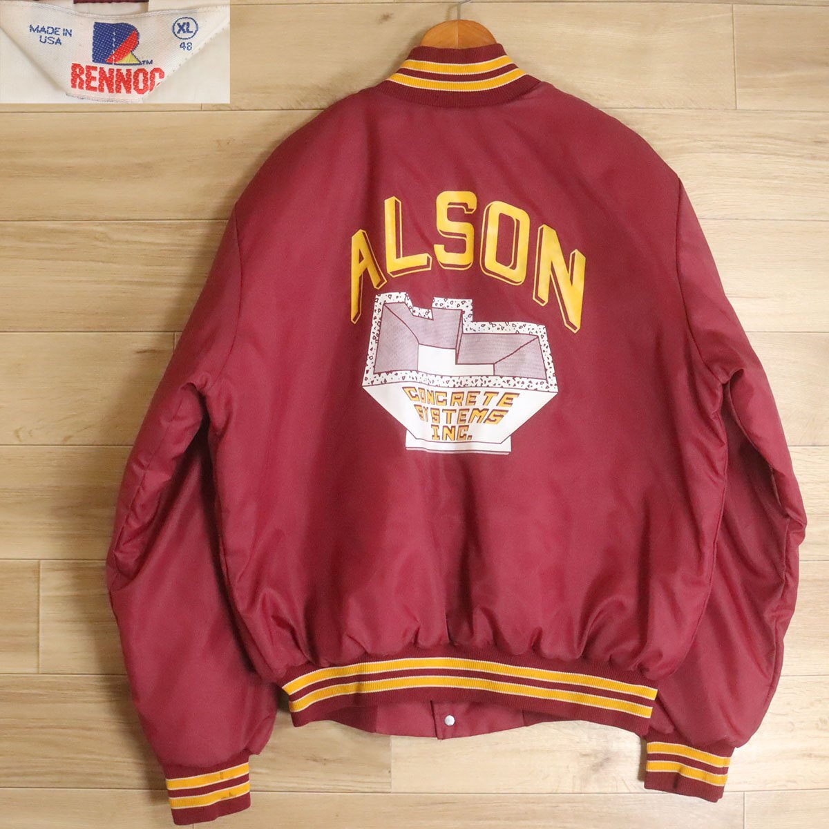 B17R/R6.3-5 USA製 RENNOC ナイロンスタジャン バーシティジャケット バックプリント ブルゾン ジャンパー XL アメリカ古着