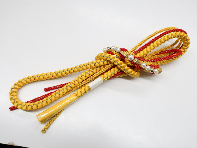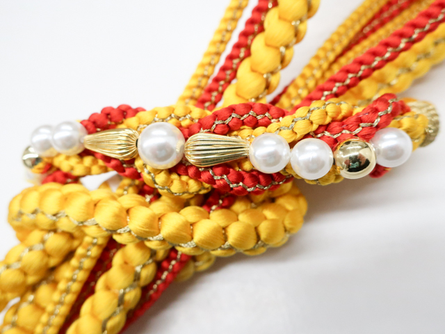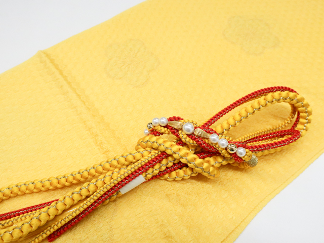 《京都一輝堂》【着物】 和装小物 帯締め 帯揚げ セット 帯締 帯揚 未使用品 振袖用 丹後ちりめん 丸組 金糸 手組紐 パーツ付 24w-9655