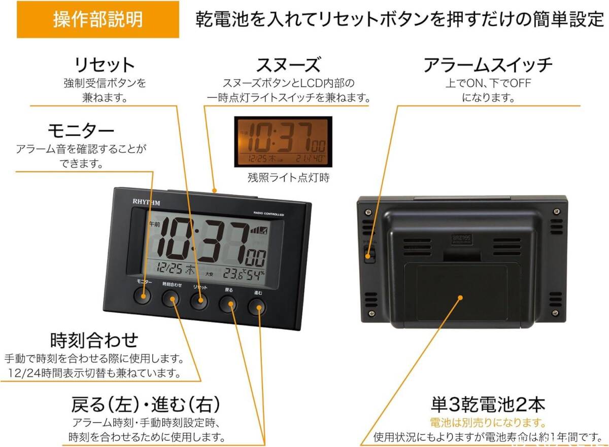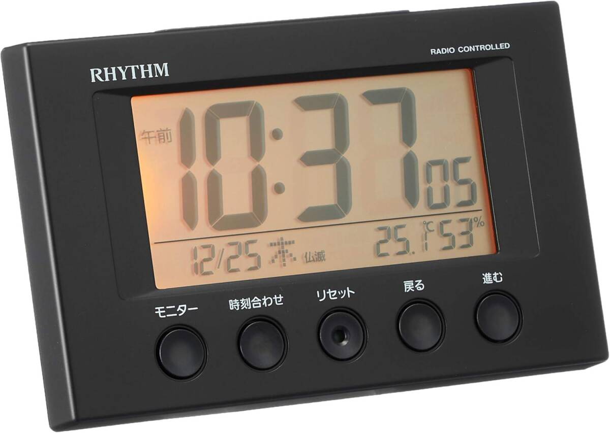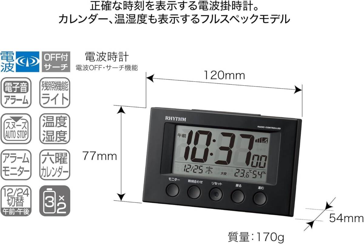 リズム(RHYTHM) 目覚まし時計 電波時計 温度計・湿度計付き フィットウェーブスマート 黒 7.7×12×5.4cm 8RZ