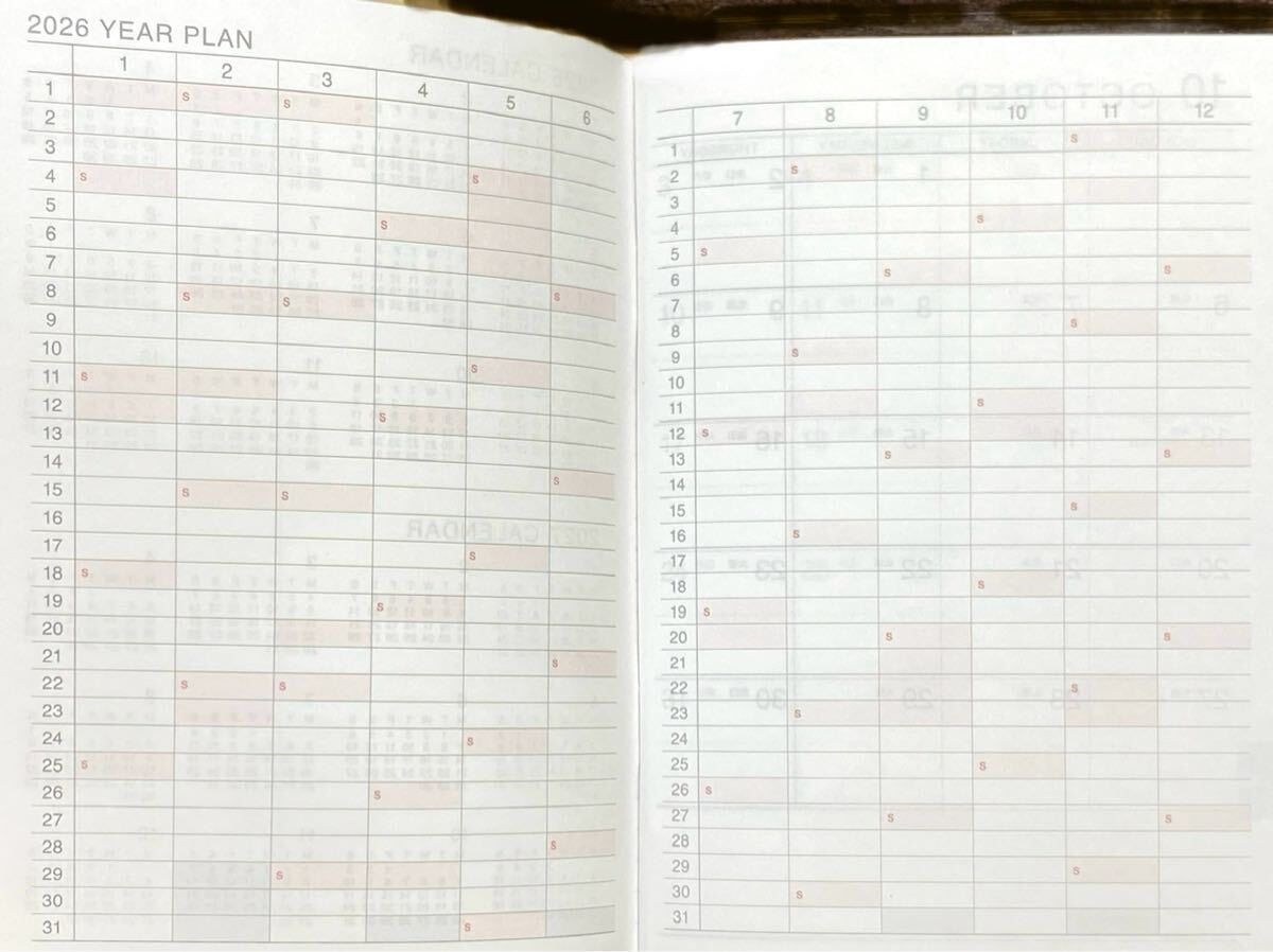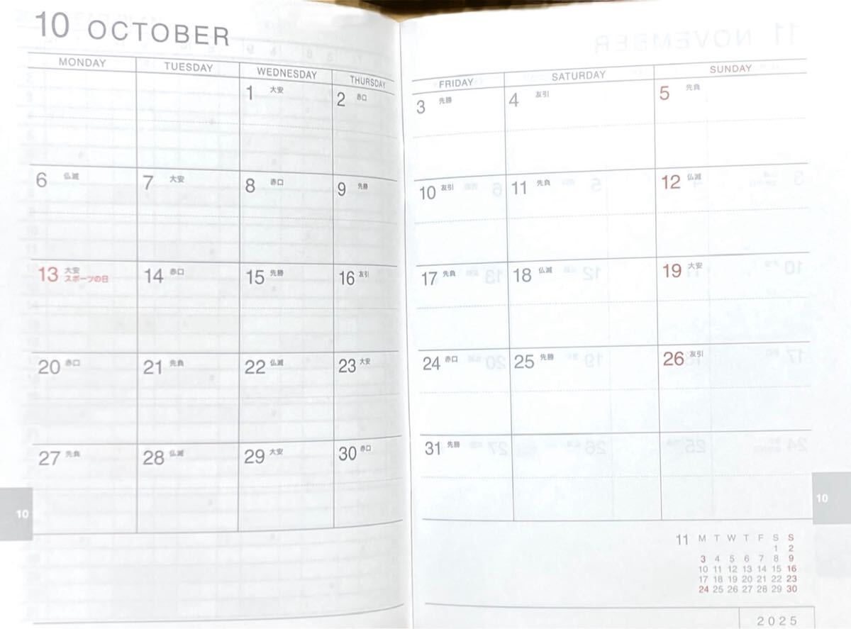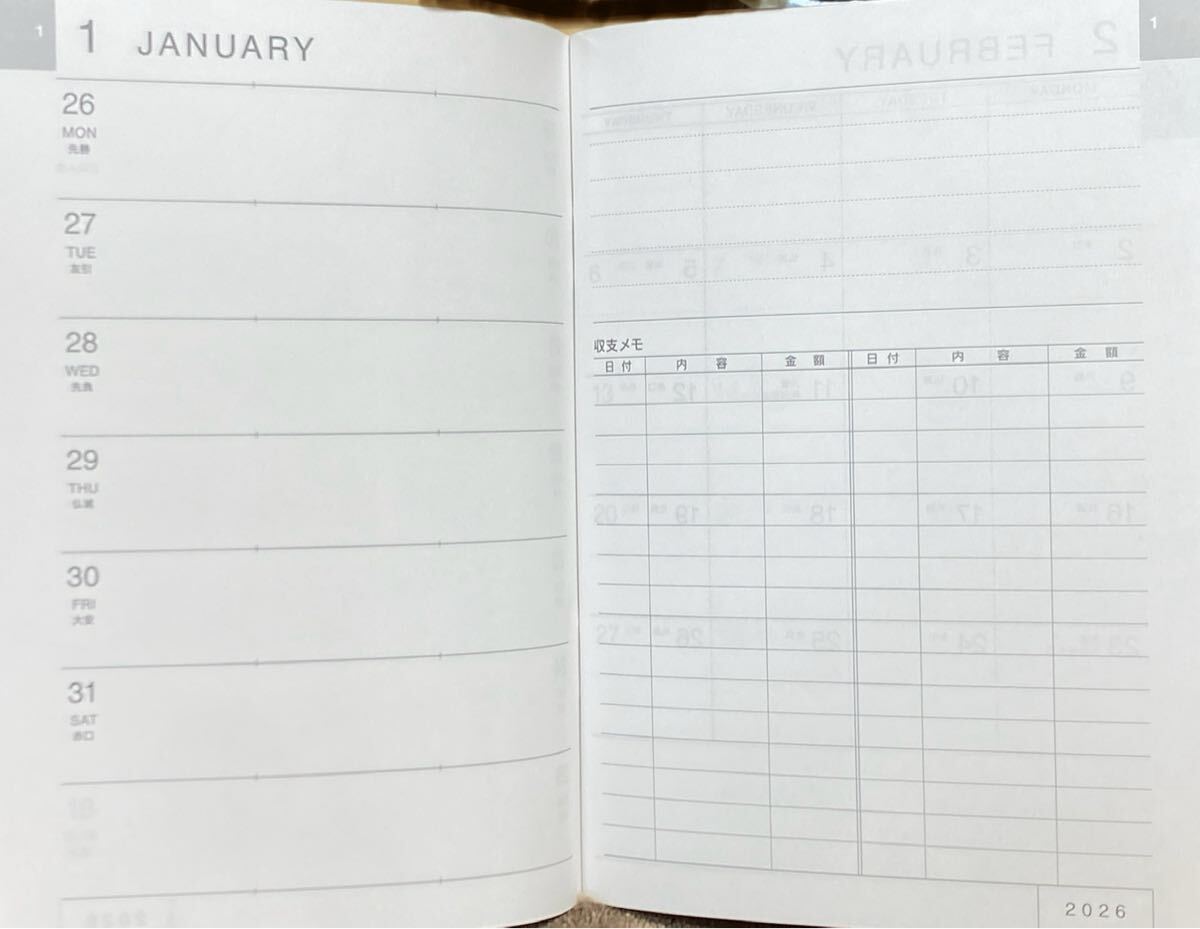 表紙に年号、ロゴ等、全く無いシンプルデザインのスケジュール帳です。
