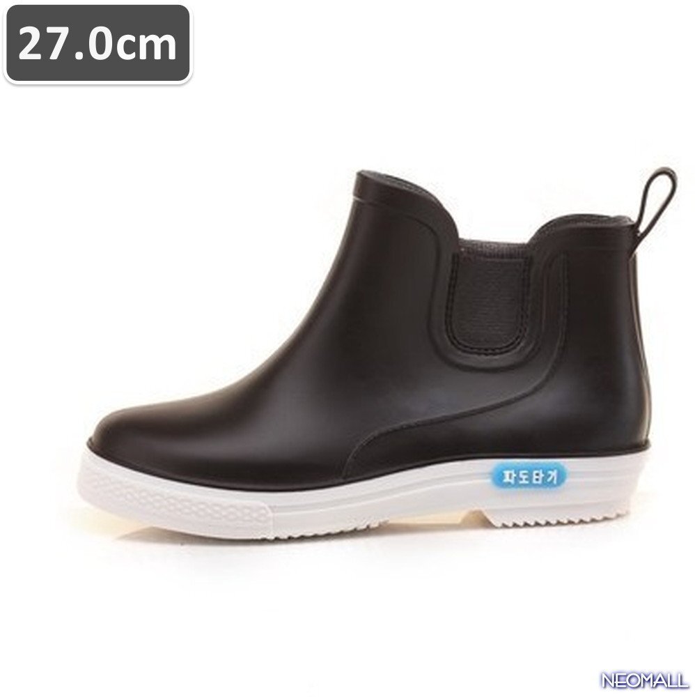 雨対策 ☆【486】メンズ レインシューズ ブラック×ホワイト 27.0cm オシャレ ショートブーツ シンプル 梅雨 雨 長靴 雨靴 防水