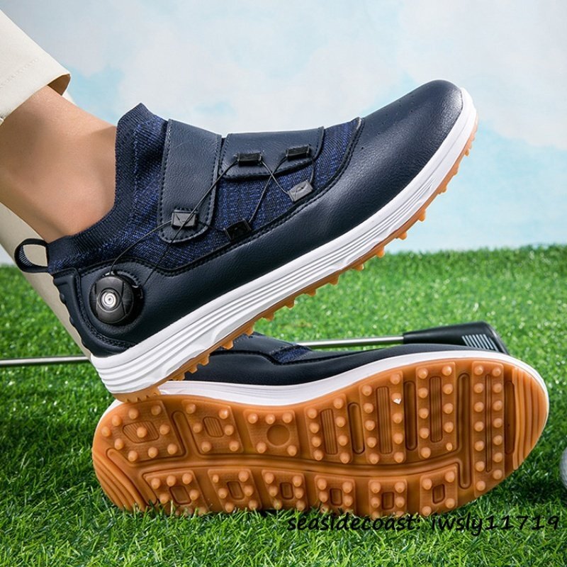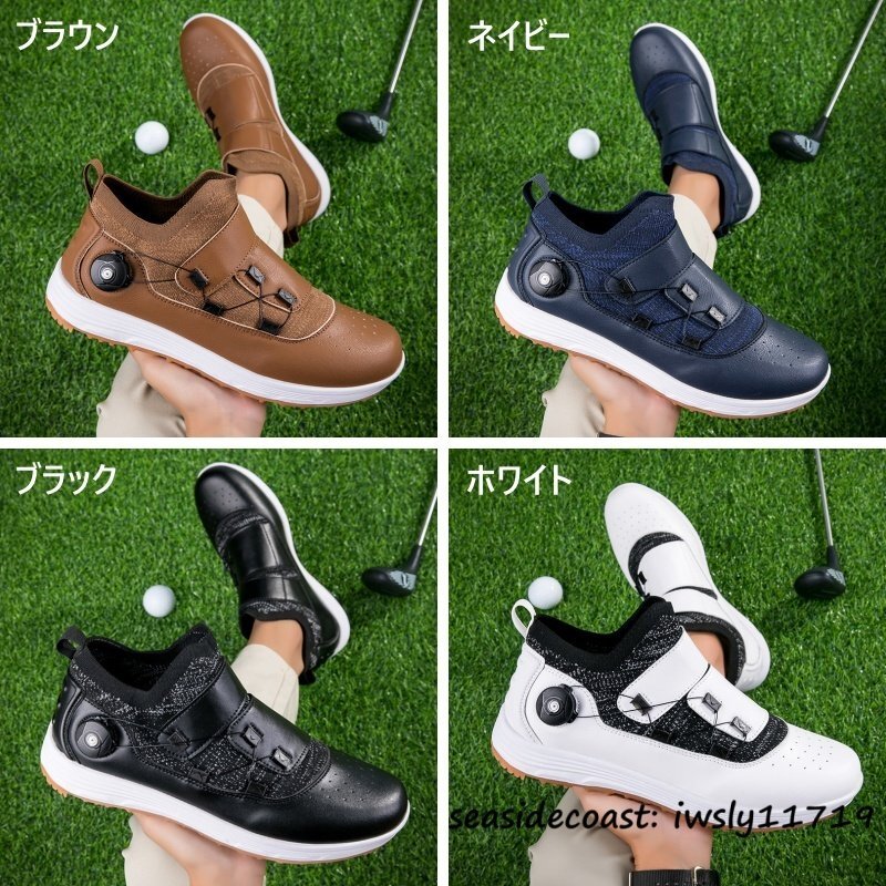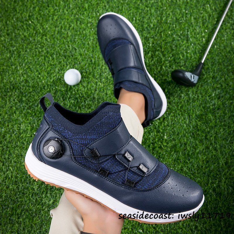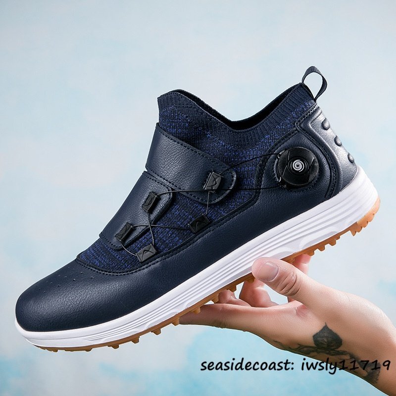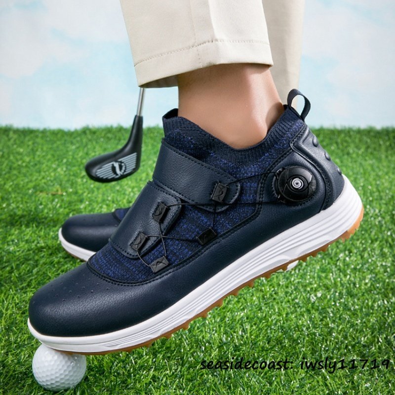 高級品 ゴルフシューズ 強いグリップ 新品ダイヤル式 運動靴 フィット感 軽量スポーツシューズ 弾力性 通気性 防滑 ネイビー 27.5cm