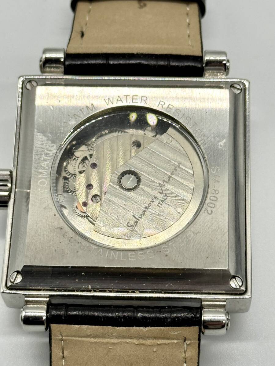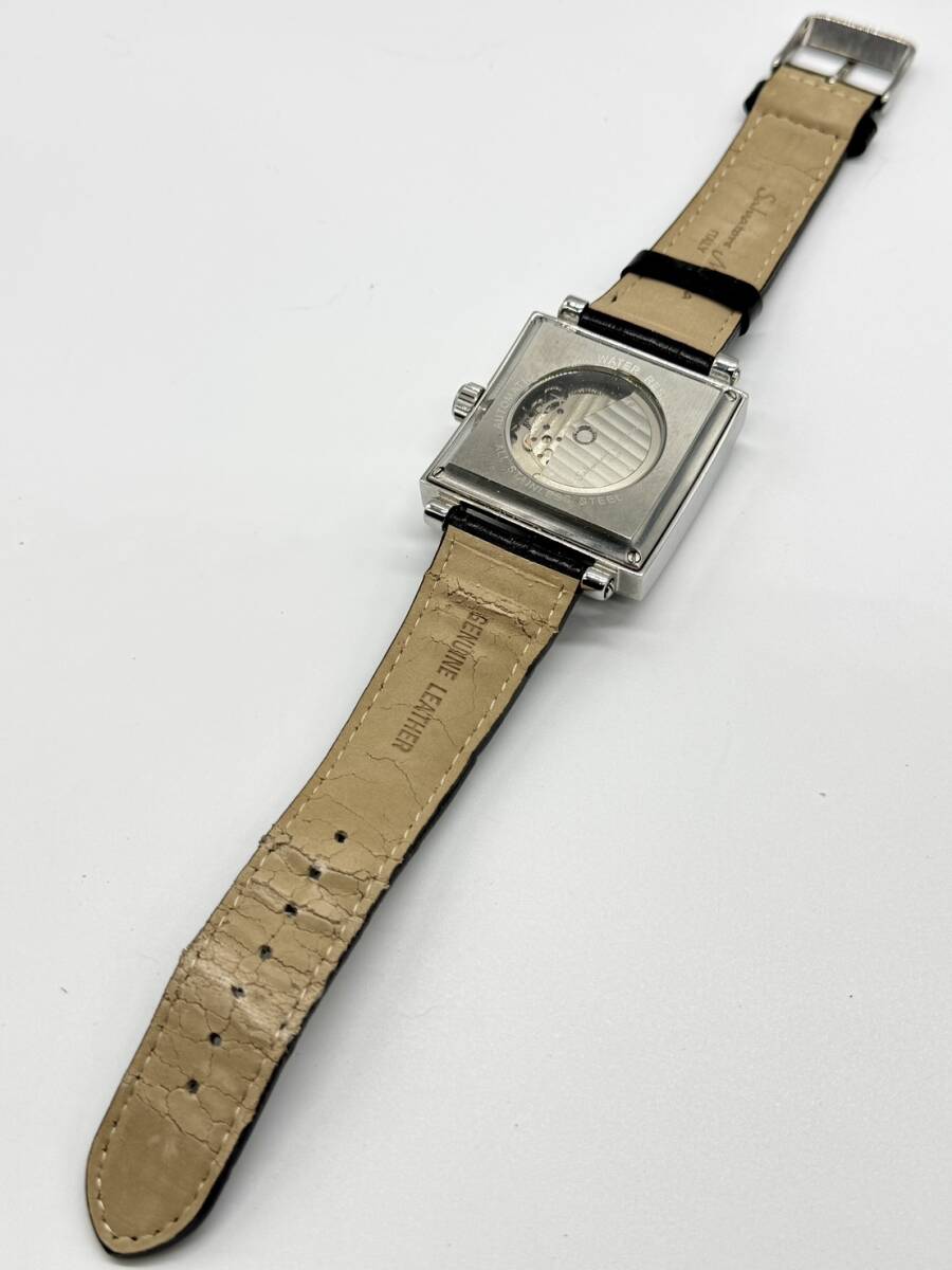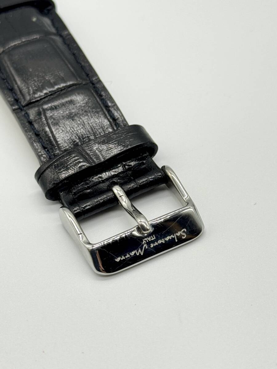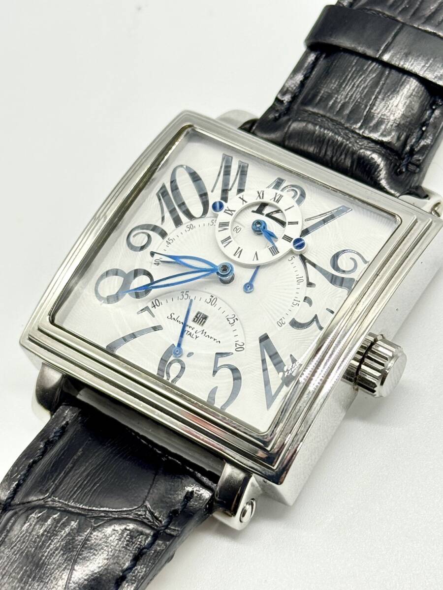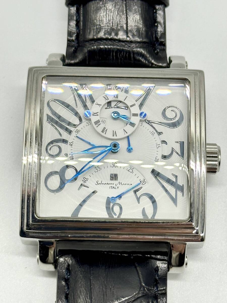 【商品詳細】 Salvatore Marra サルバトーレマーラ 白文字盤 型番:SM-8002 腕回り:約19cm ケース幅:約4cm(リューズ除く) 状態:風防に目立った傷は見当たりません。若干の曇り有り。ベゼル、裏蓋にキズ、スレ有り。ベルト劣化有り。剥がれてポロポロしています。汚れは少な目。 キズや汚れの感じ方は人それぞれだと思いますので細かい商品の状態は画像にてご確認ください。 撮影状況やご使用のパソコン環境により、実物と多少色が異なる場合がございます。 画像で判断できない場合は質問をしてください。 私の分かる範囲で答えさせていただきます。 プチプチ等を使った簡易梱包となりますので神経質な方は入札をご遠慮ください。 出来る範囲で対策はしますがポスト投函になる発送を希望の場合は雨天時に破損、水濡れ等のリスクがございます。 トラブル回避の為、悪い評価が多数ある方は入札されても削除させて頂く場合がございます。 取り扱っている物はあくまで中古品です。 中古品の特性を理解したうえで入札をお願いいたします。 すり替え防止等の理由から返品には対応しておりません。 土日・祝日を挟む場合は発送が遅れる場合がございます。 長くなりましたが、この取引がお互いに有意義なものになるよう祈っております。 R711-66 |