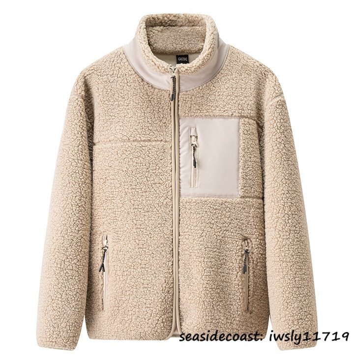 特売*フリースジャケット メンズ スタンドカラー 裏ボア ブルゾン 秋冬 厚手 防防寒 保温 ゆったり アウター アウトドア ベージュ XL