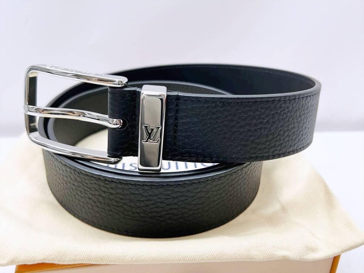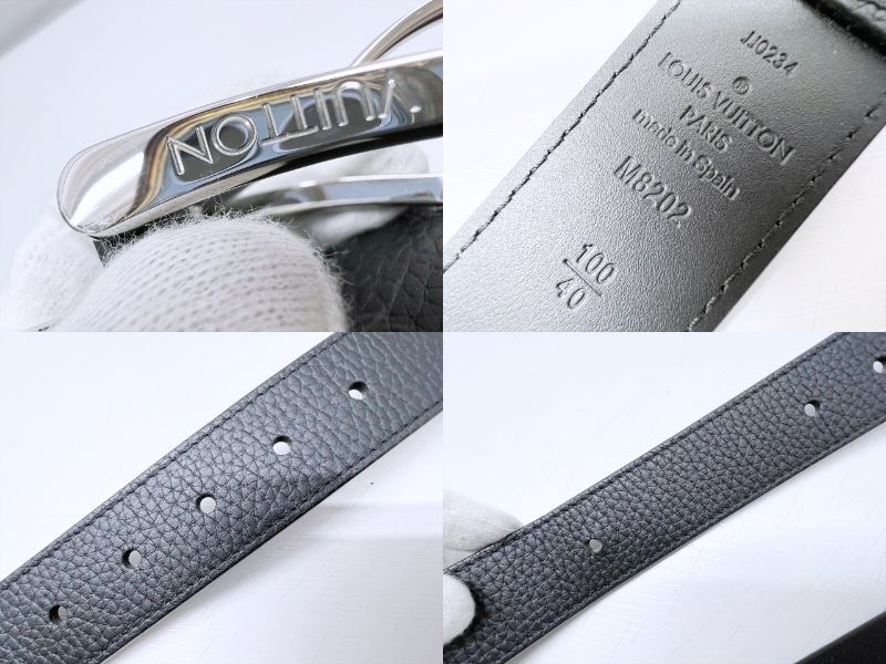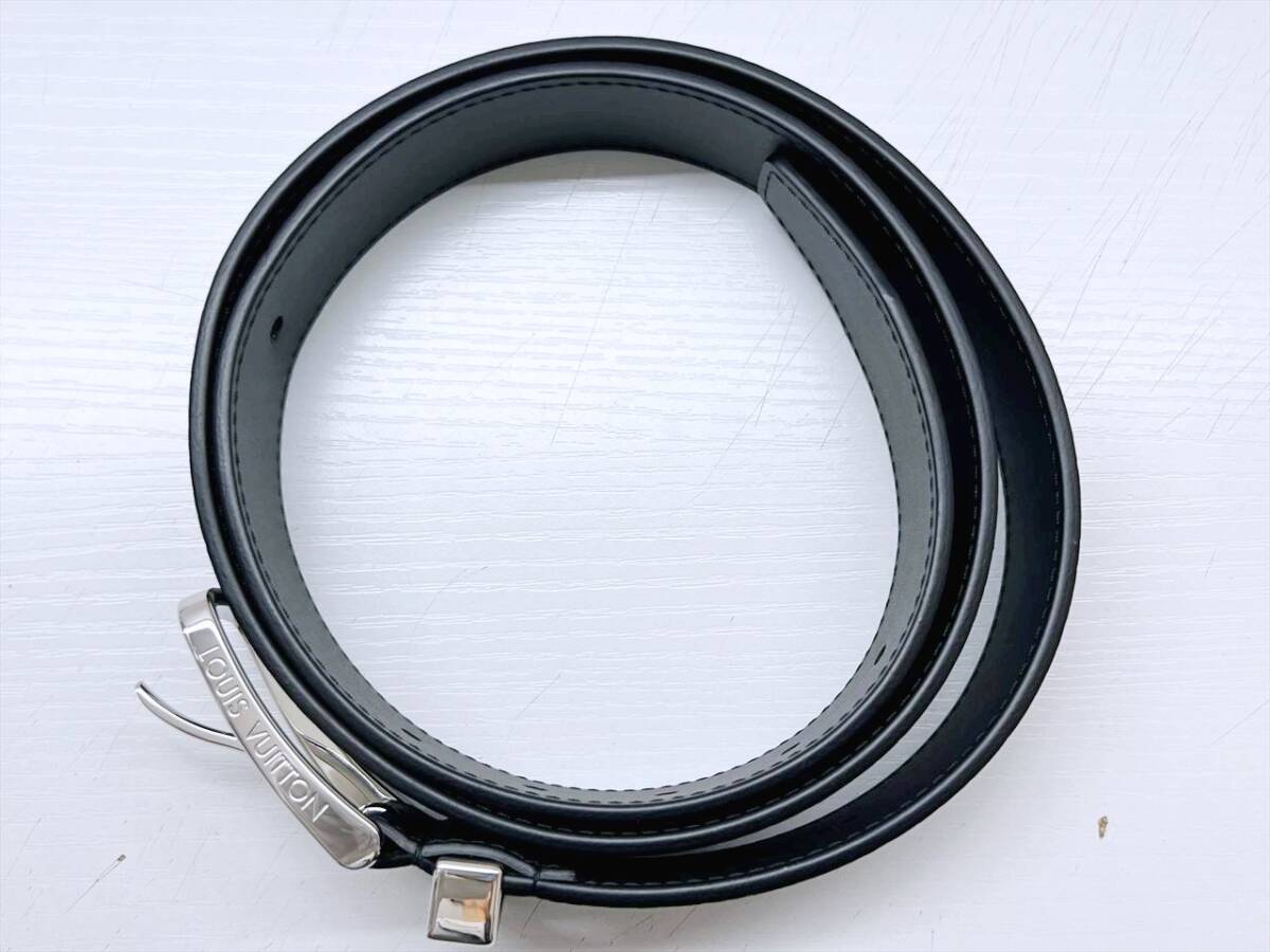 25年現行 未使用保管 美品 Louis Vuitton ルイヴィトン ベルトポンヌフ 35MM 黒 100 M8202 穴増設あり