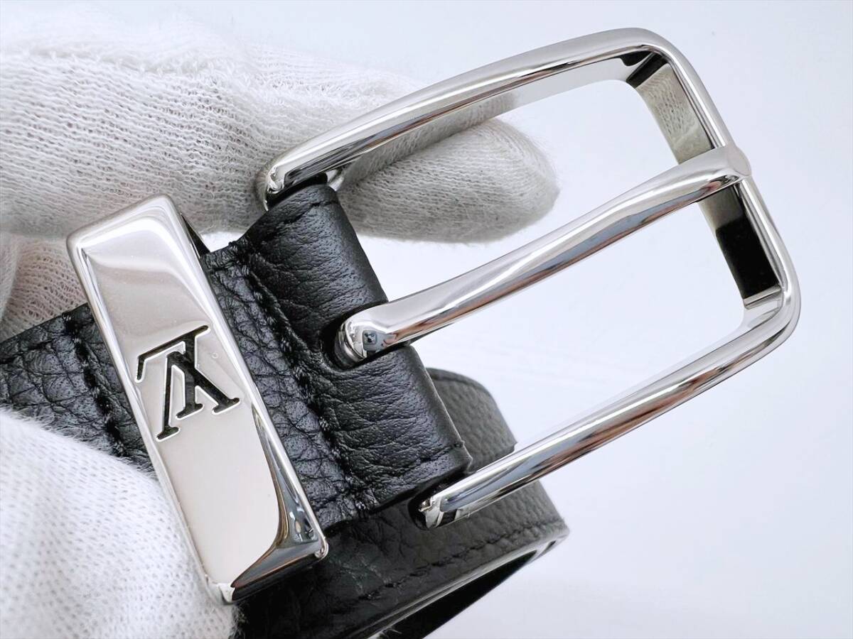 25年現行 未使用保管 美品 Louis Vuitton ルイヴィトン ベルトポンヌフ 35MM 黒 100 M8202 穴増設あり