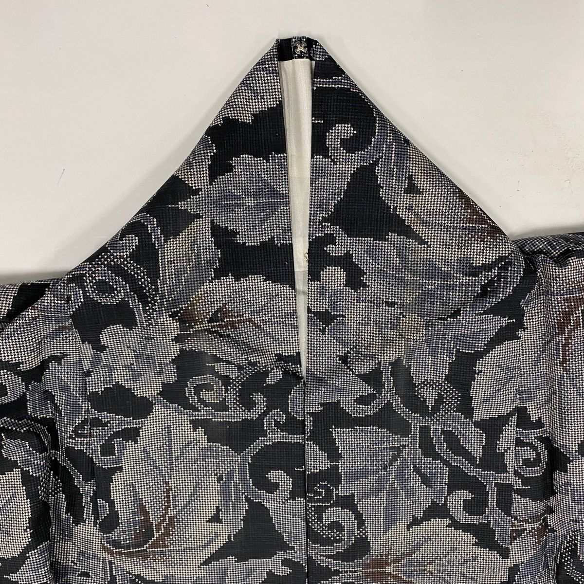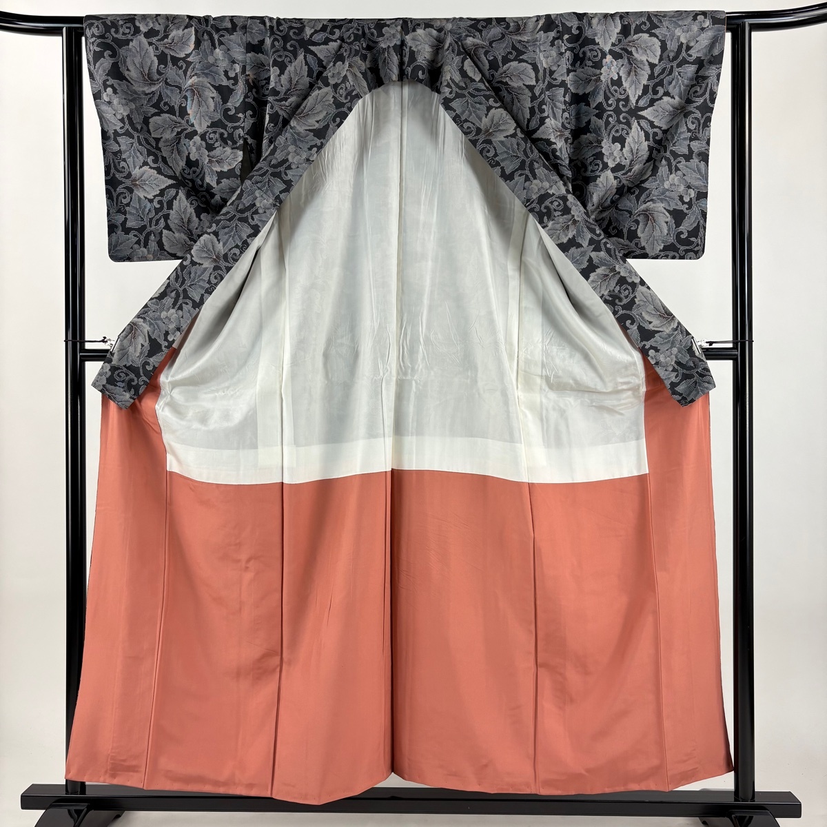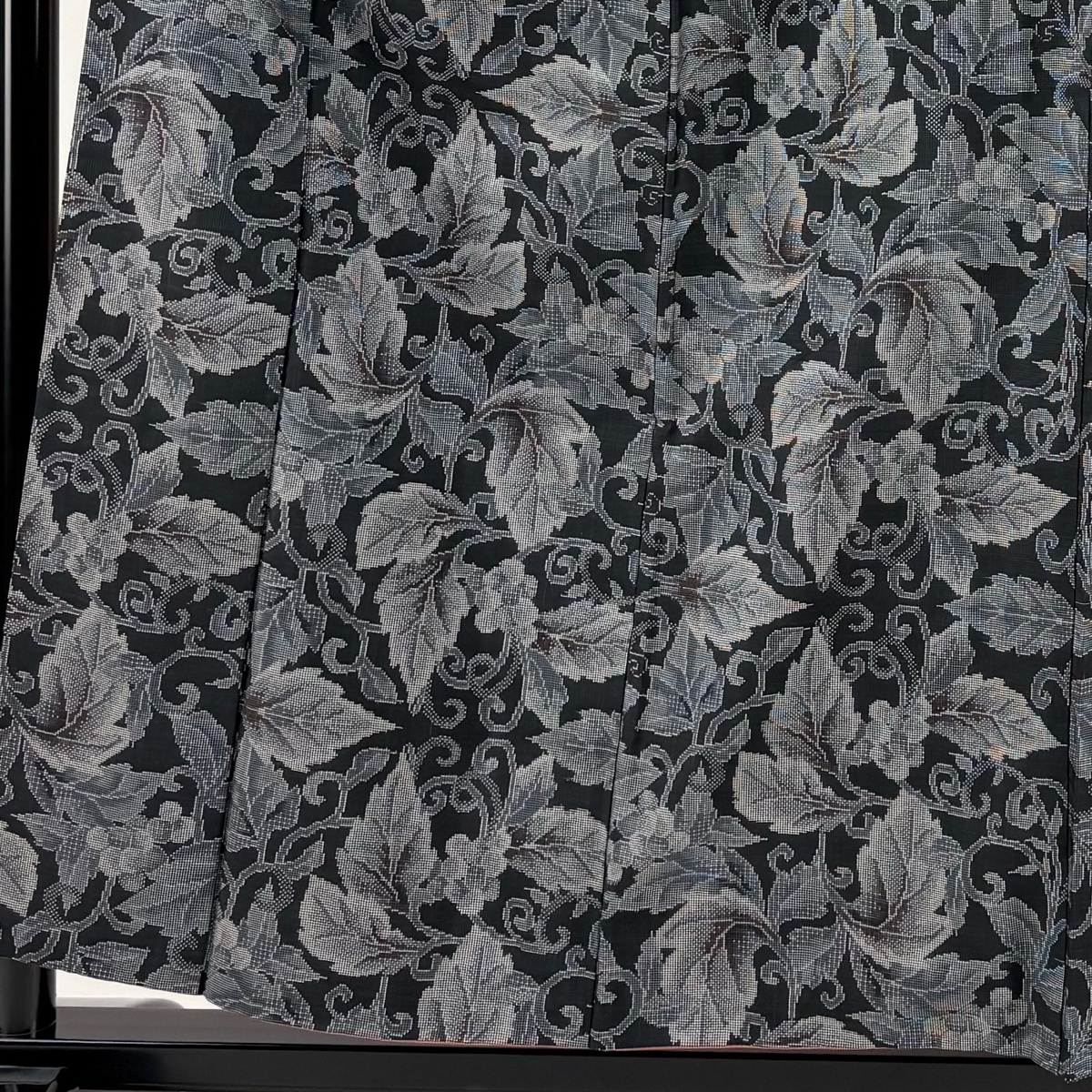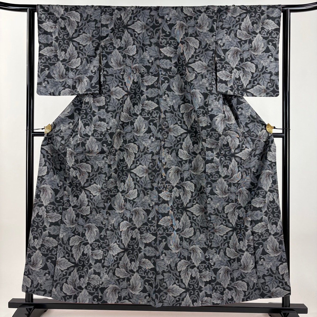 | 紬 美品 秀品 葡萄唐草 墨色 袷 身丈157 裄丈63 S 正絹 【中古】 |