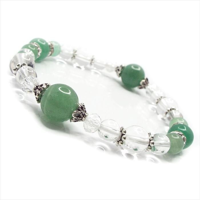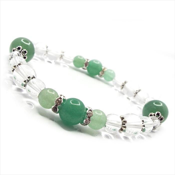 | 【STONE KITCHEN 天然石 パワーストーン】 グリーンアベンチュリンは素晴らしい ヒーリングストーンとして知られていますが 波動はとても穏やかでちょっと地味な印象さえ受けます。 派手なパワーストーンではありませんが その穏やかさこそがこの石の特徴でもあります。 水晶は組み合せた石の力を増幅し、より強く 発揮できるよう助ける作用があるといわれています。 そのためどの石と組み合わせても相性が良く他の石の個性を強め その石の波動が常に清浄に保たれるようサポートしてくれるでしょう。 内周:約16cm サイズ:グリーンアベンチュリン 約10mm・約6mm・約8mm 水晶 約6mm・約8mm 1点 注意事項 ※金属部分は汗や汚れ等で変色する場合がございます。気になる場合は 金属磨きや布等で軽くふき取る事をおすすめします。 ※石の種類によっては、艶を引き出すことを目的として、ワックスや着色加工がされているものもあります。 ※表示のサイズは必ずしも最大値・最小値のサイズのものが入っているわけではございません。 ※天然石のため同じものでも色味・模様などが異なります。 ※照明の具合で実際とは色合いが異なる場合がございます。 また、天然素材特有のクラック・内包物を有する場合がございます。予めご了承下さい。 | |