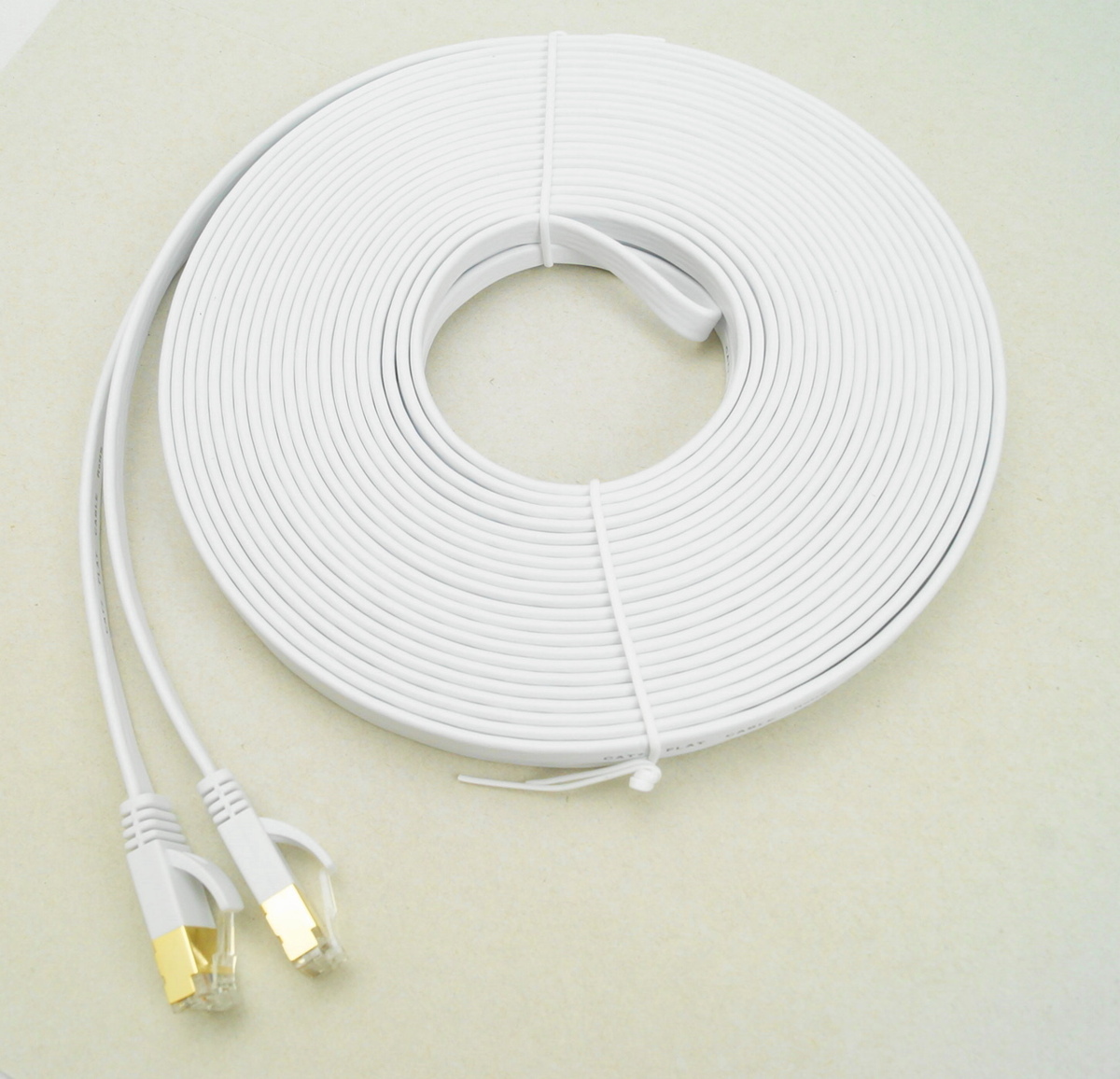 LANケーブル CAT7 15m (白)フラット 10ギガ対応 シールドケーブル 薄型 金メッキ コネクタ ツメ折れ防止