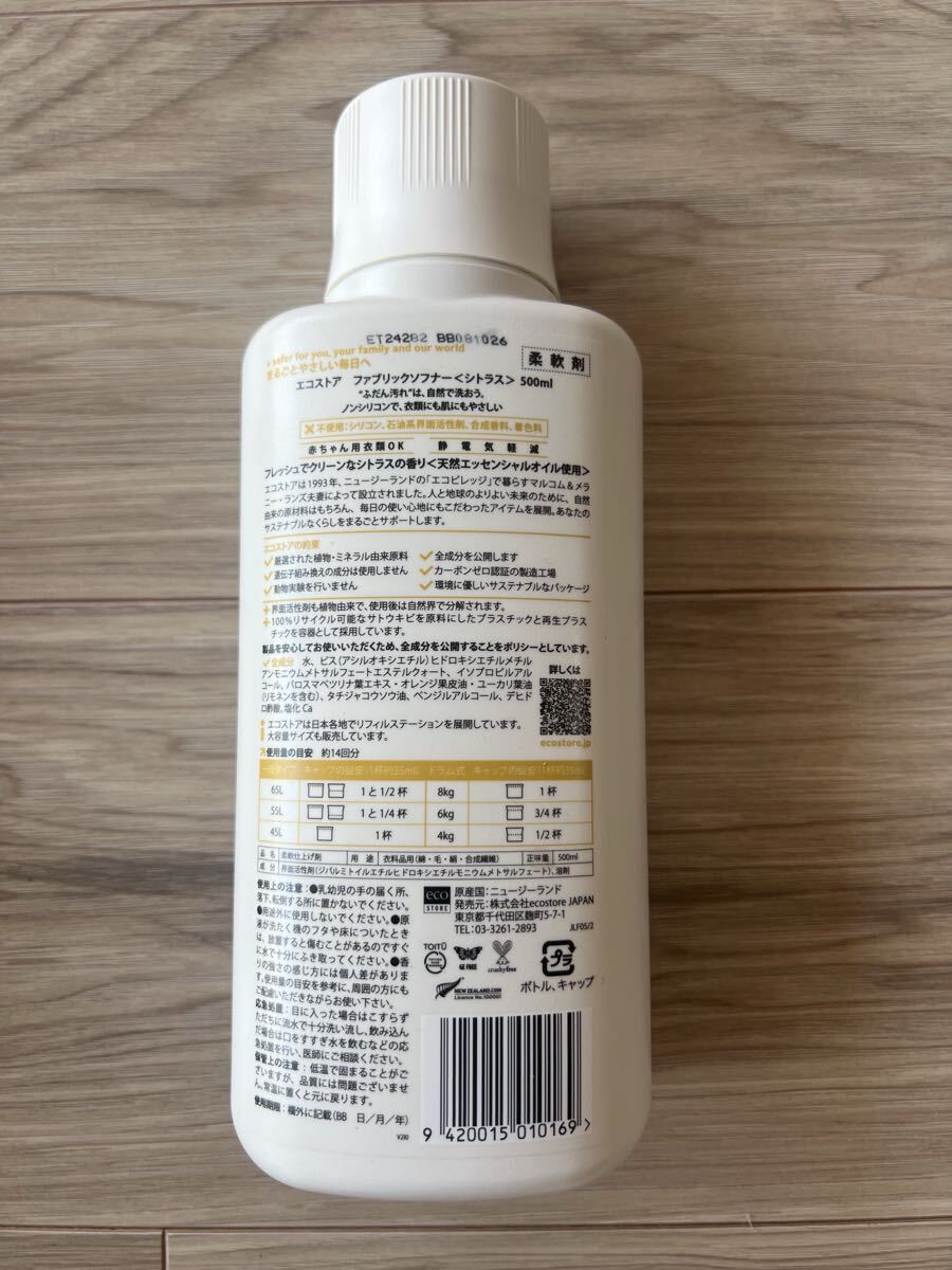 エコストア ecostore ランドリーリキッド ユーカリ洗濯洗剤とファブリックソフナーシトラス柔軟剤の空容器2つセットです!