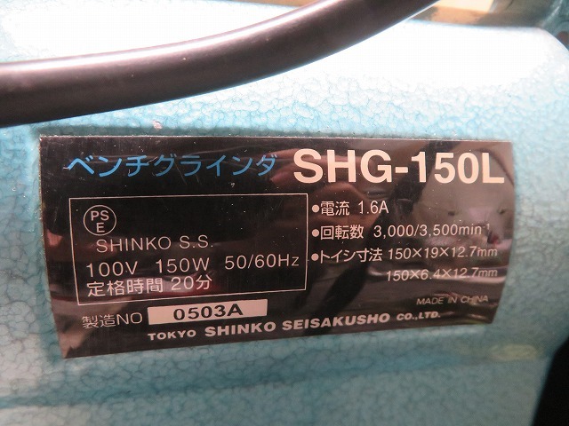 K☆TOKYO SHINKO SEISAKUSHO ベンチグラインダ SHG-150L 刃研ぎ 研磨 取説付 ◎動作品