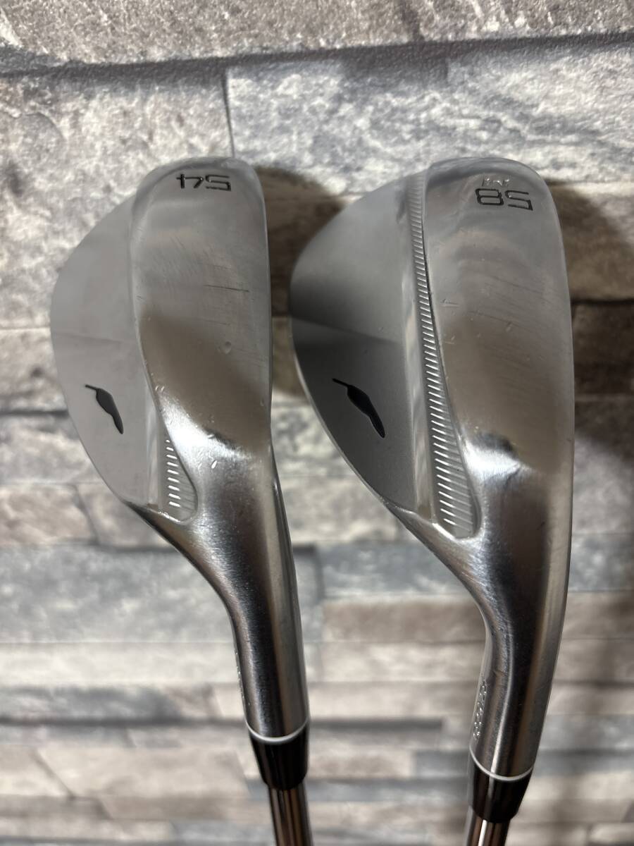 こちらの商品は フォーティーン RM-α ウェッジ 54.58 【58はMバンス】2本セット シャフトはダイナミックゴールドS200 となっております。グリップはイオミック2.3バックラインなしに交換したばかりです。新品で購入してから5ラウンド程使用致しました。