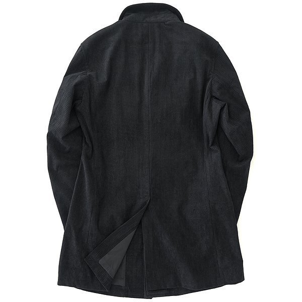秋冬らしいニットコーデュロイ素材を使用したスタンドカラーコートです。 ポリエステルのマイクロファイバーで編まれたタテ畝ニットコーデュロイで、ニット素材ならではの柔らかな風合いとストレッチ性、仕立て映えするハリ感が特長です。 千鳥柄のエンボスプリントを加えることで艶っぽい光沢のある一着に仕上がっています。 衿は立てても、畳んでチェスターやステンカラーのようにも着られる、樹脂ワイヤー入りのスタンドカラーで、様々なスタイリングに対応できます。 ウエストにシェイプを入れたやや細身のシルエットですが、ニットの上からでも着用できるよう、袖周りはゆとりのある作りになっています。 また、表地のストレッチ性を損なわせないため、裏地にもストレッチ裏地を使用しているなど、細部にもこだわって作られています。 【デザイン】 ・総裏仕立て ・フロントは4つボタン ・センターベント ・袖先は1つボタン(本開き) |