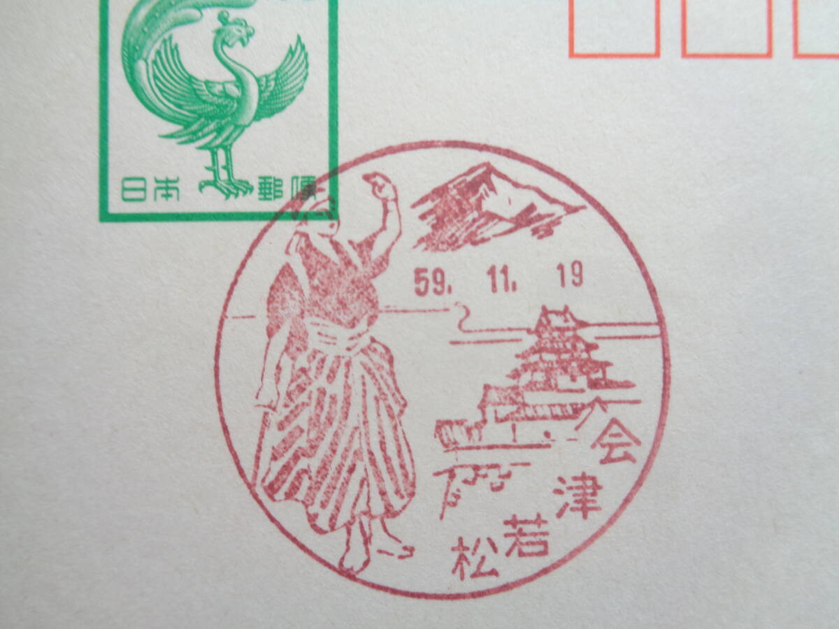 鳳凰はがき    初日印/風景印    福島県2枚     会津若松/S59.11.19    中之作/S59.7.4