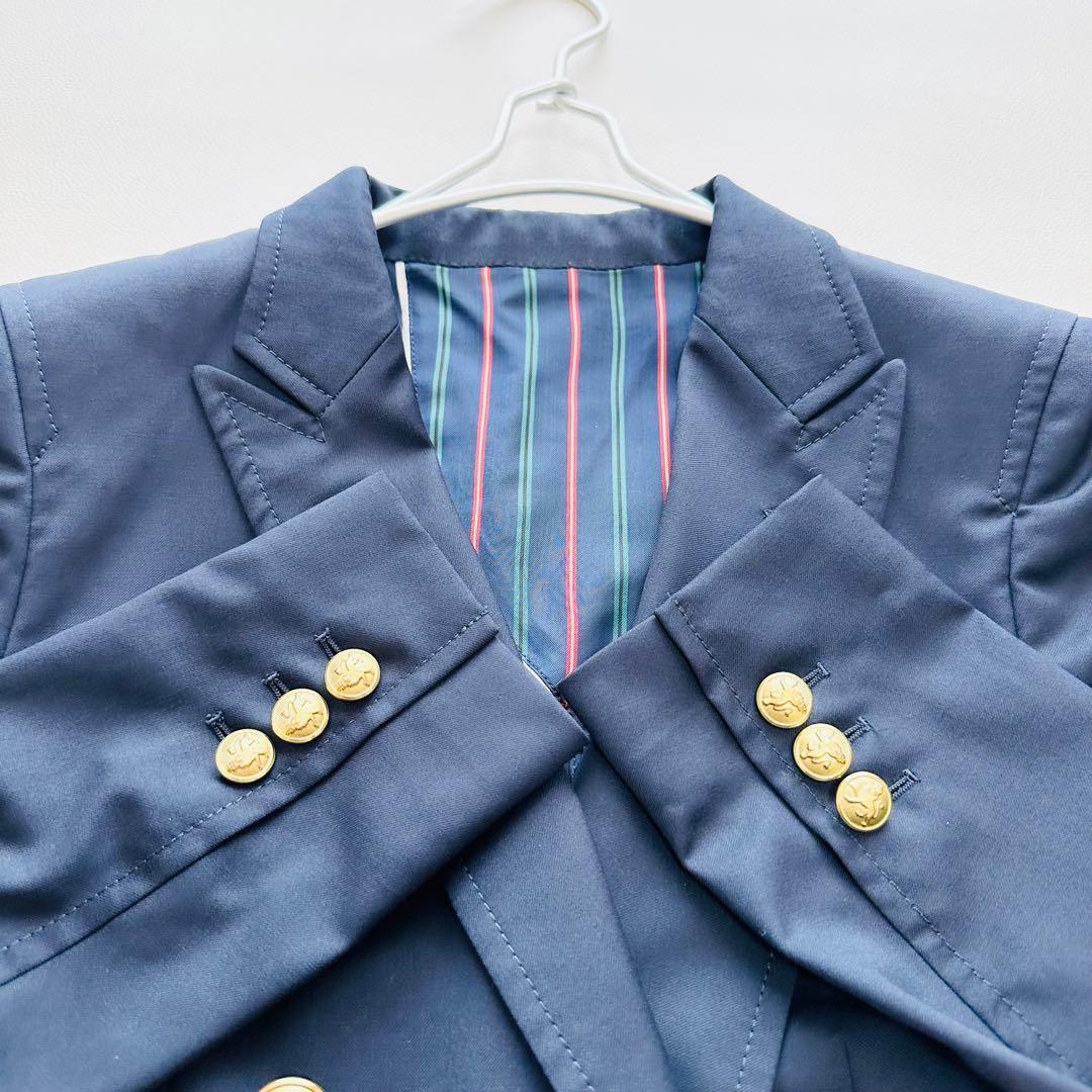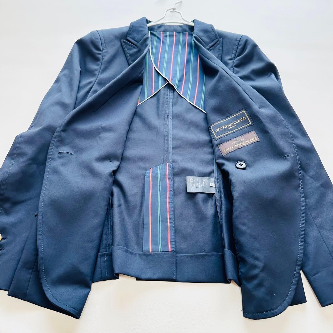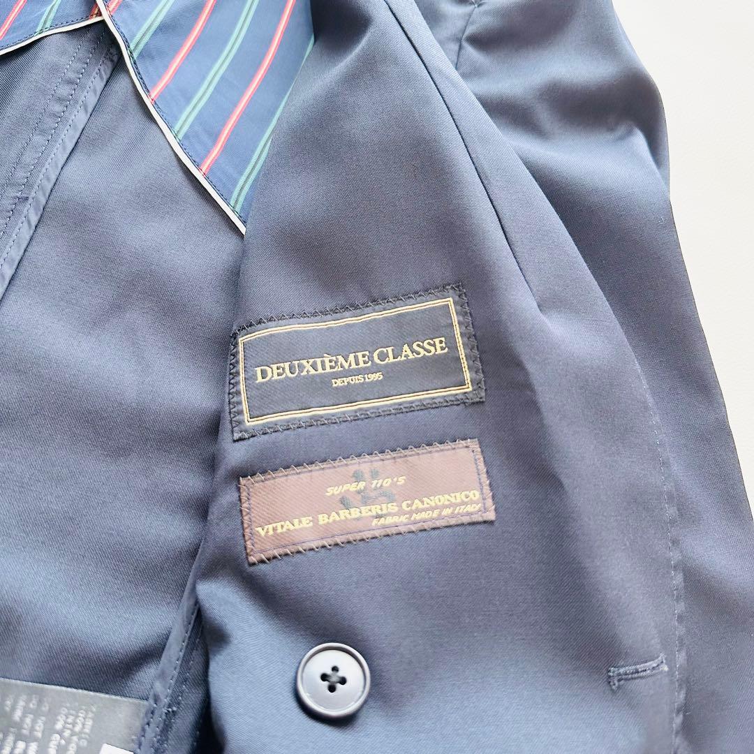 美品 ドゥーズィエムクラス 高級生地 金ボタンジャケット Vitale Barberis Canonico テーラードジャケット Deuxieme Classe ダブル 背抜き 裏地ストライプ柄 ネイビー カノニコ