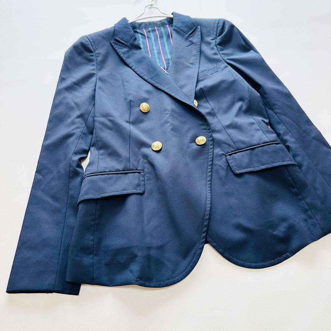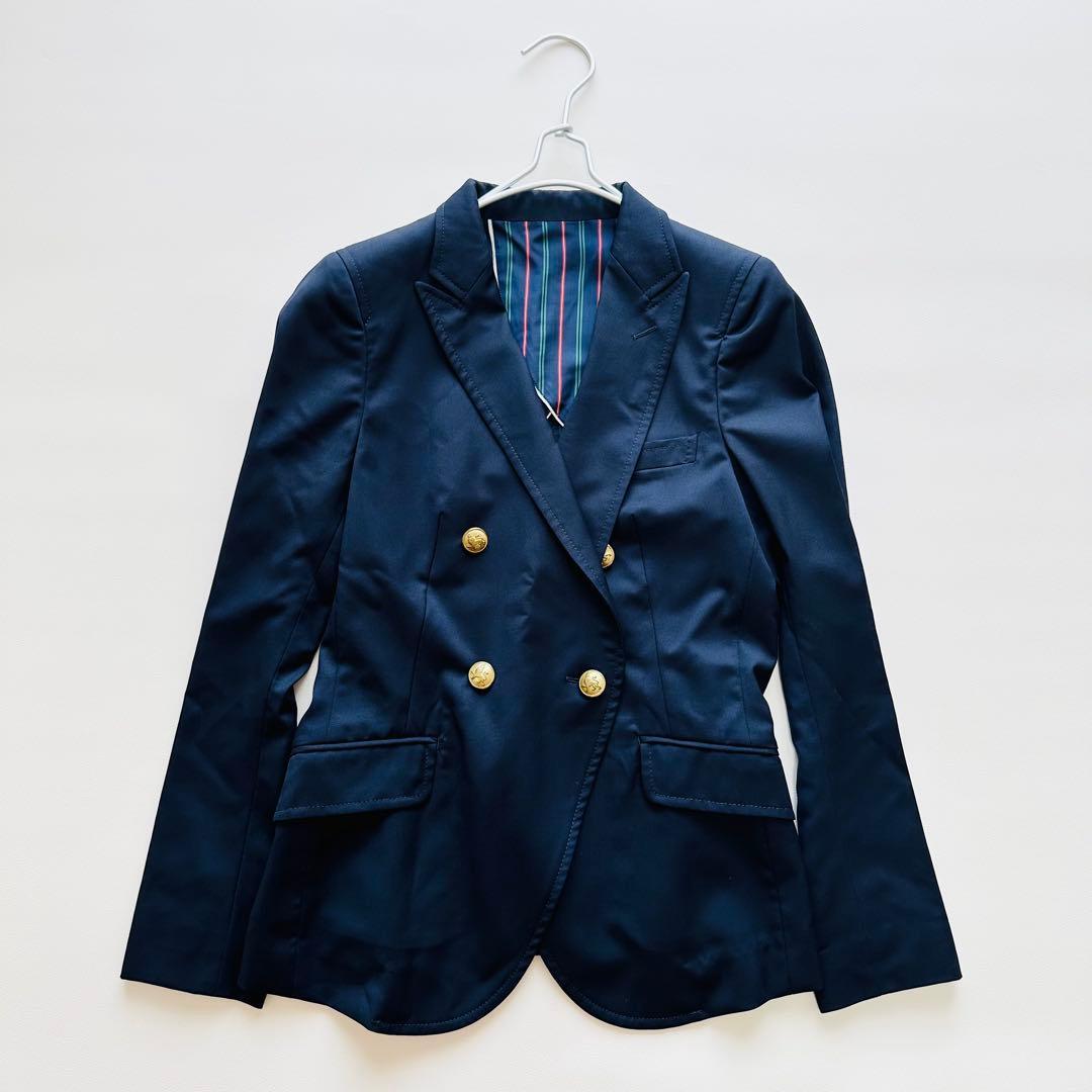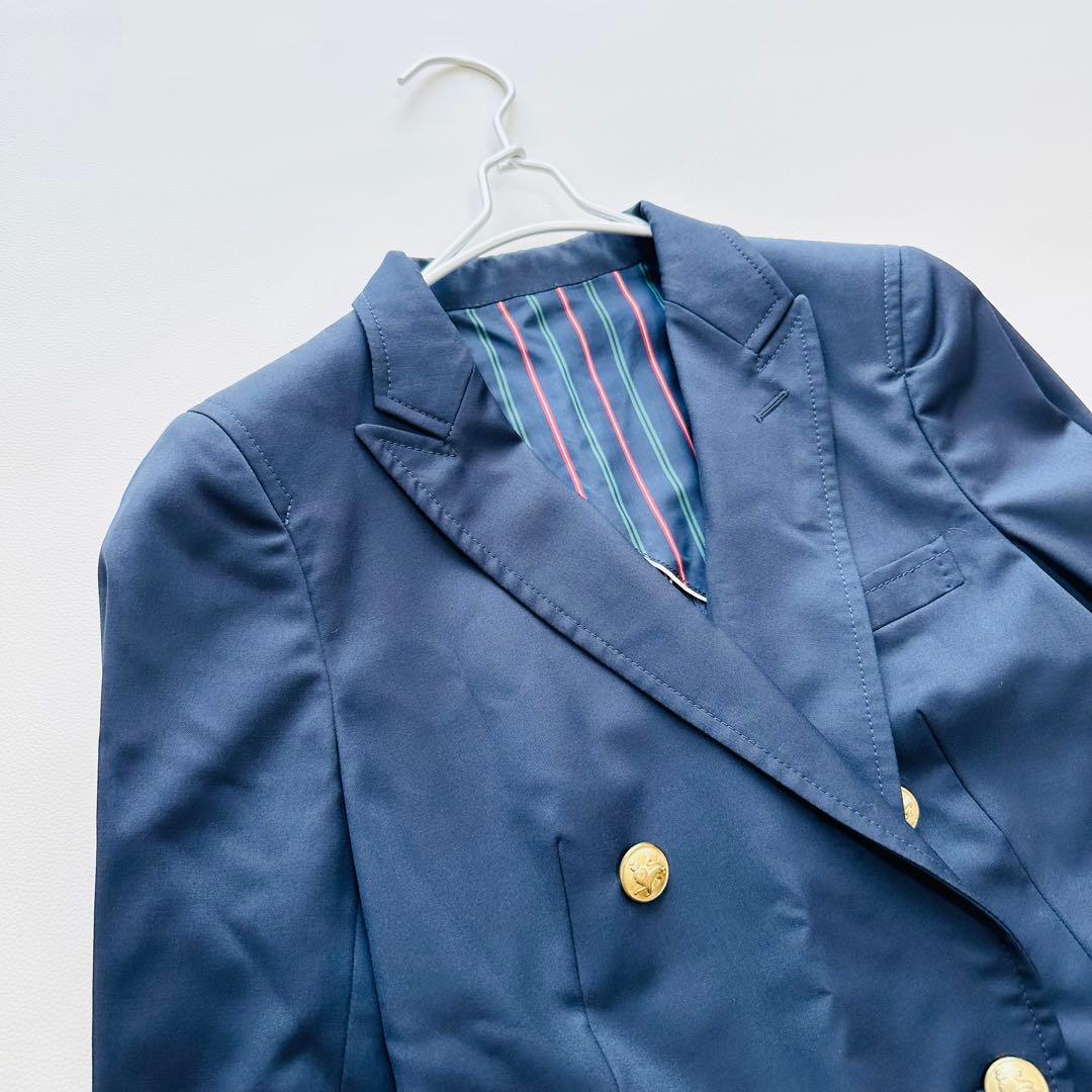 美品 ドゥーズィエムクラス 高級生地 金ボタンジャケット Vitale Barberis Canonico テーラードジャケット Deuxieme Classe ダブル 背抜き 裏地ストライプ柄 ネイビー カノニコ