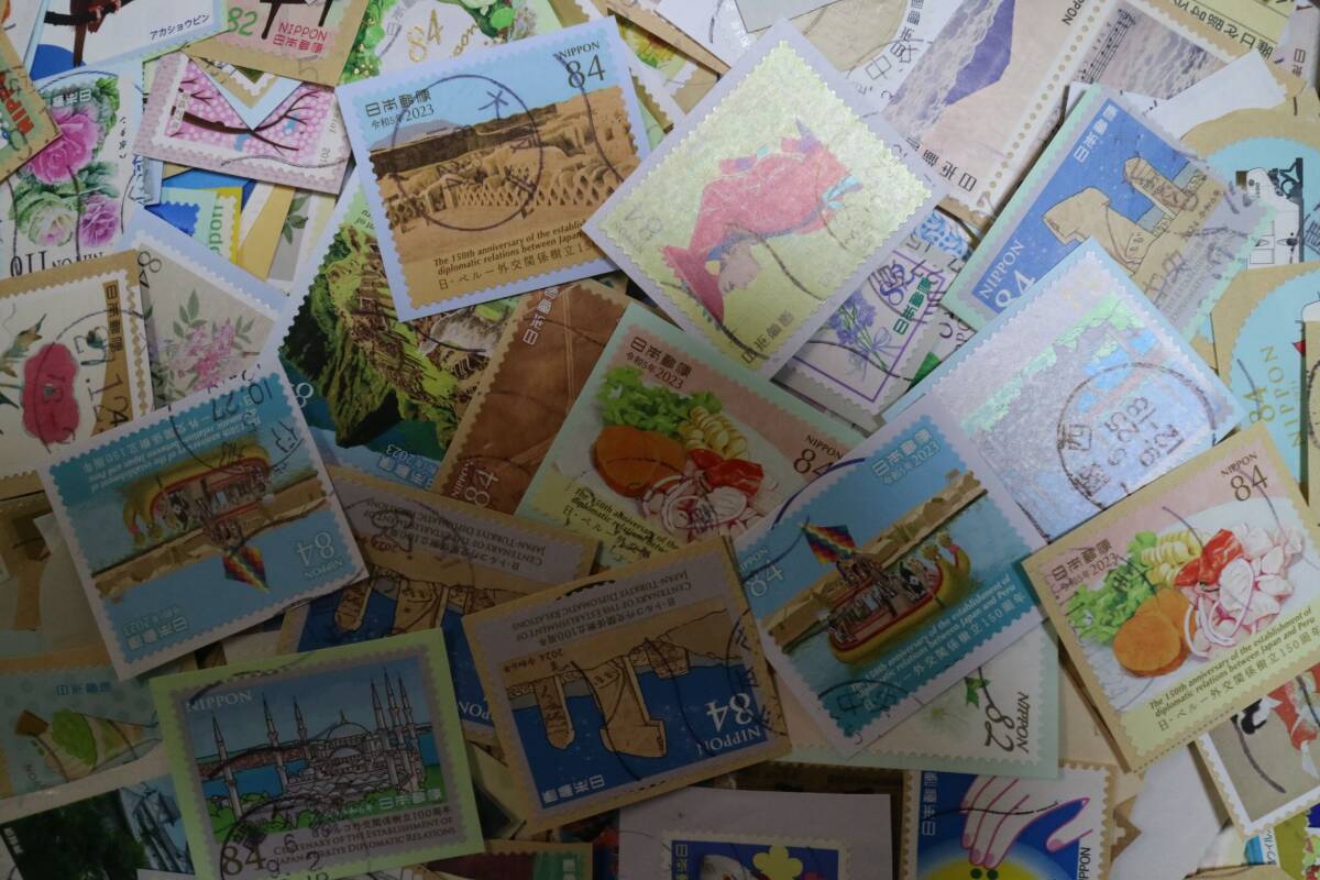 普通切手や破損した切手は取り除きましたが、まだ混入している可能性がありますので、多少多めに加えております。