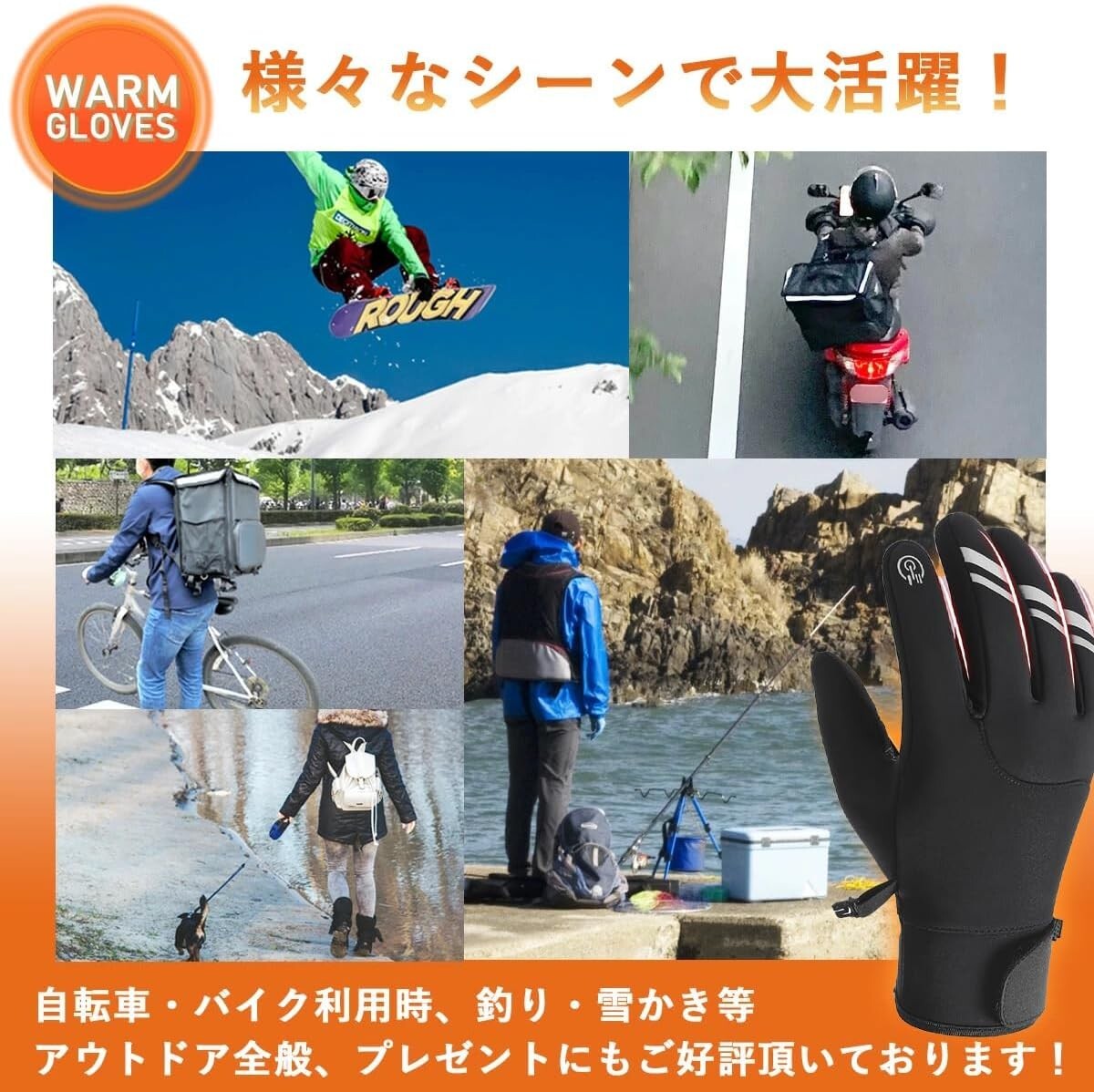 【暖かく快適な手袋】手袋の表面は超微細繊維で、通気性があり速乾性があり、冷気を効果的に遮断し、超強力な防風・防水効果があります。 手袋の内側はコーラルフリース素材で、手にフィットし、快適な感触で、寒い天候でも暖かさを保ちます。