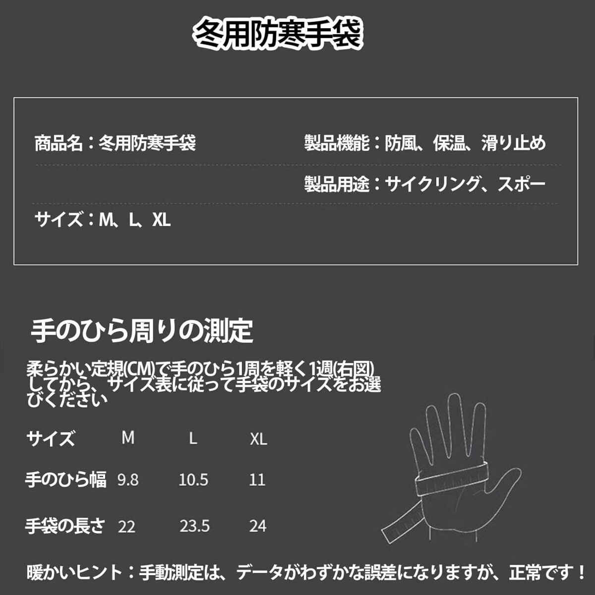 【タッチスクリーンランニンググローブ】手袋の親指と人差し指は高品質の導電性素材で作られています。 スマートフォンや車のタッチスクリーンなどのタッチスクリーンデバイスを使用する際、手袋を取る必要はありません。 注意:タッチスクリーンをより効果的かつ敏感にするために、指先が手袋の上部に触れることを確認してください。