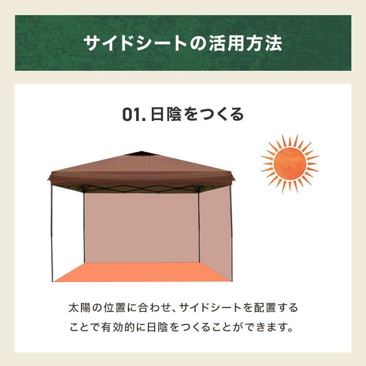横からの日差しもカット。当店のタープテントにピッタリなサイドシートです。