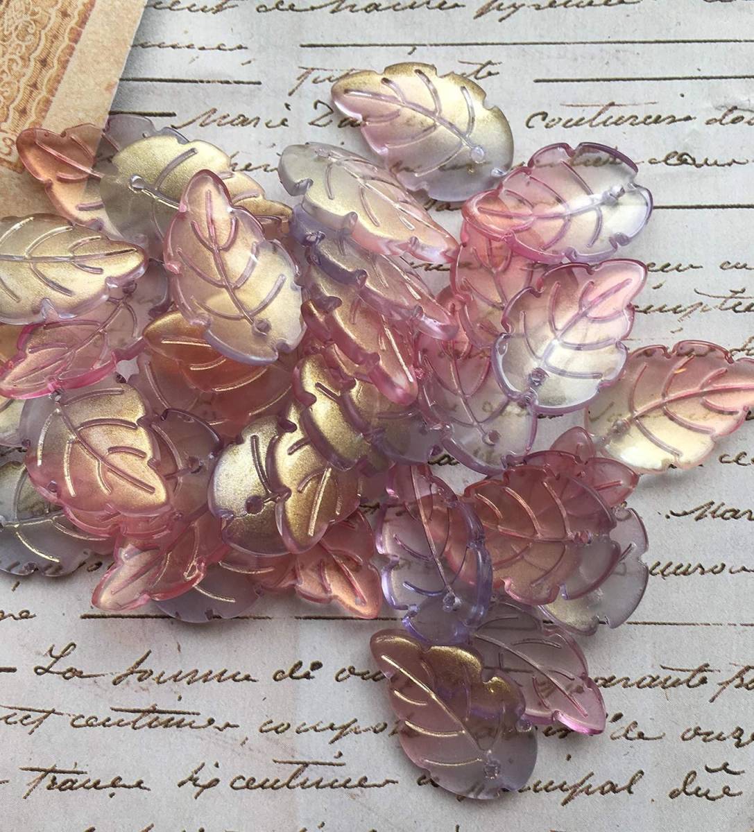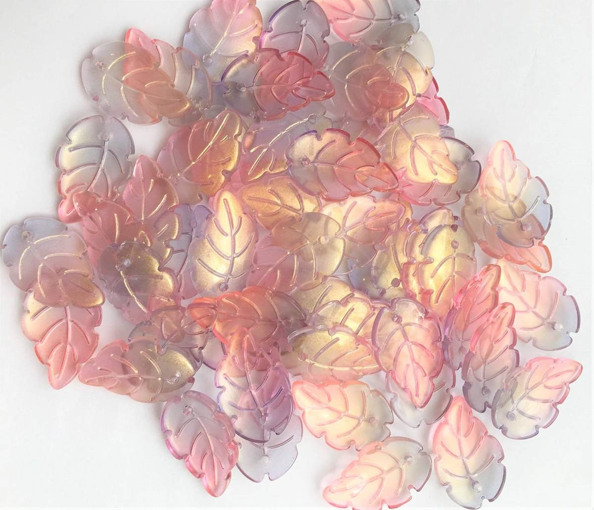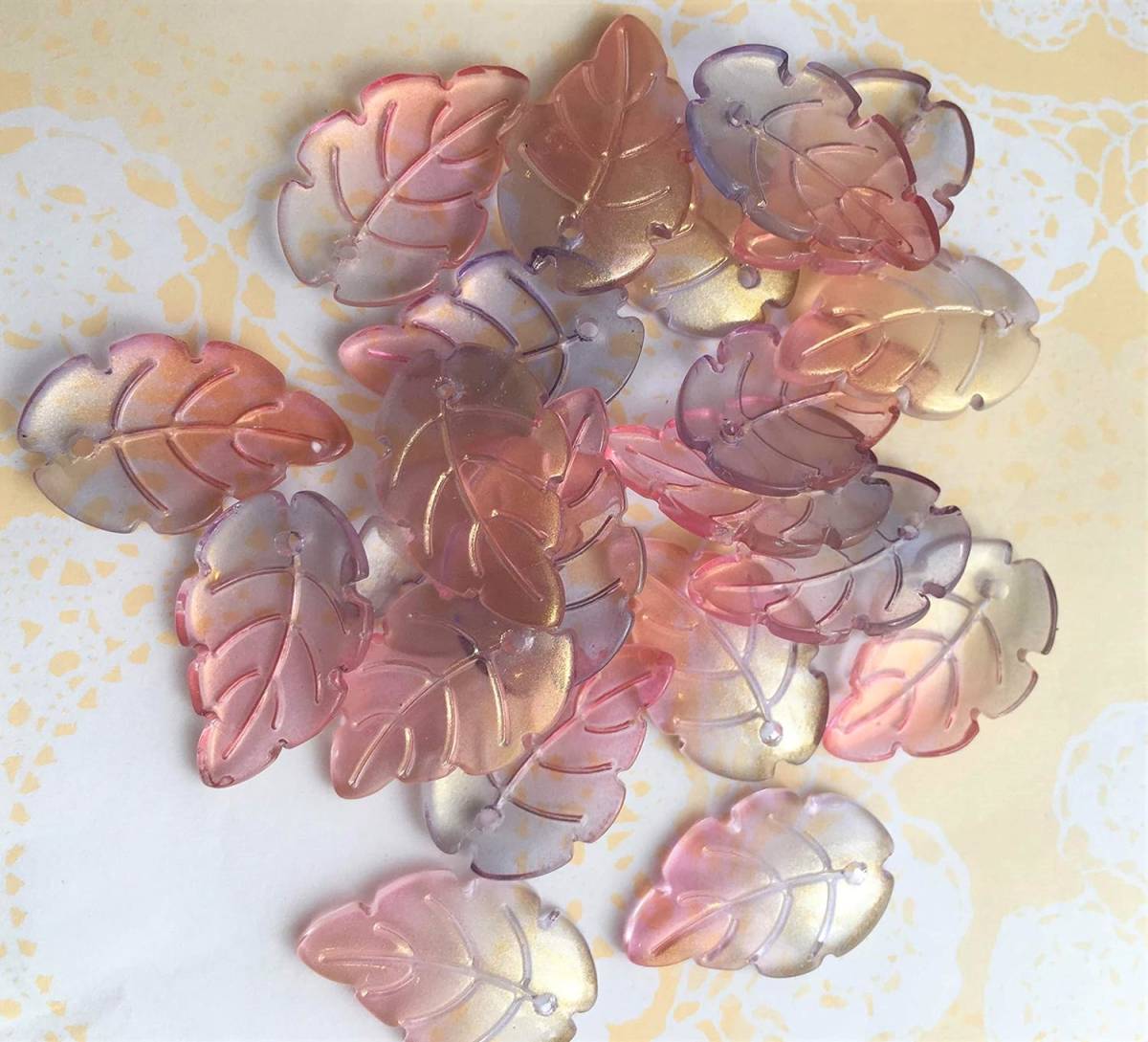 紫ピンク 葉っぱガラスビーズ 紅葉 20個 約24×15mmハンドメイド材料 イヤリング・ピアス・ブローチ クラフト G2