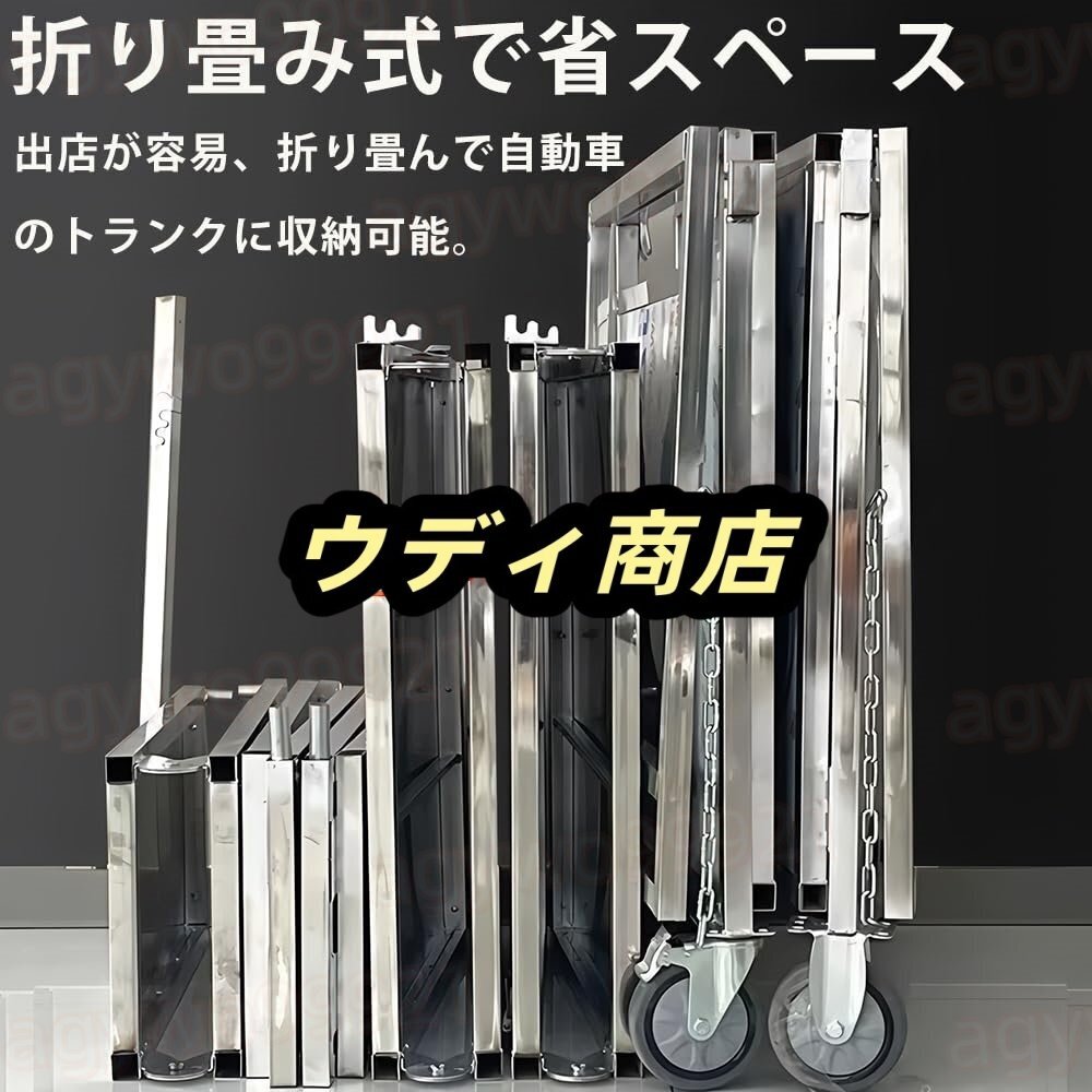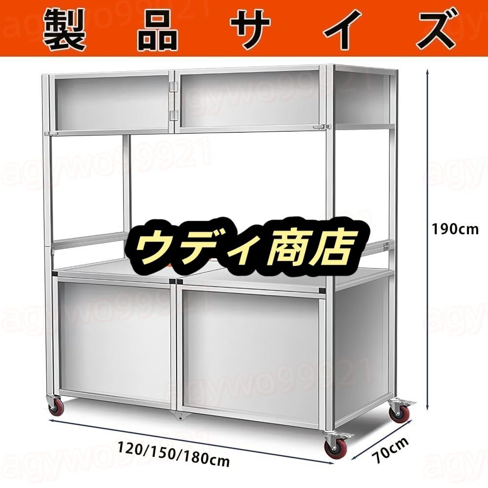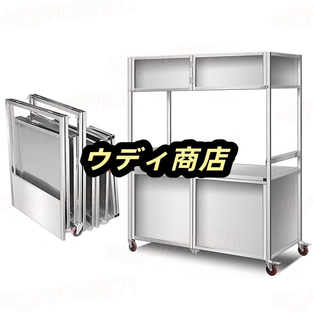 屋台ブース 折り畳み式屋台台車 車輪付き ステンレス製 移動式フードカート 多機能作業テーブル 屋外出店セット 軽量コンパクト フリマ祭りイベント用(150cm)