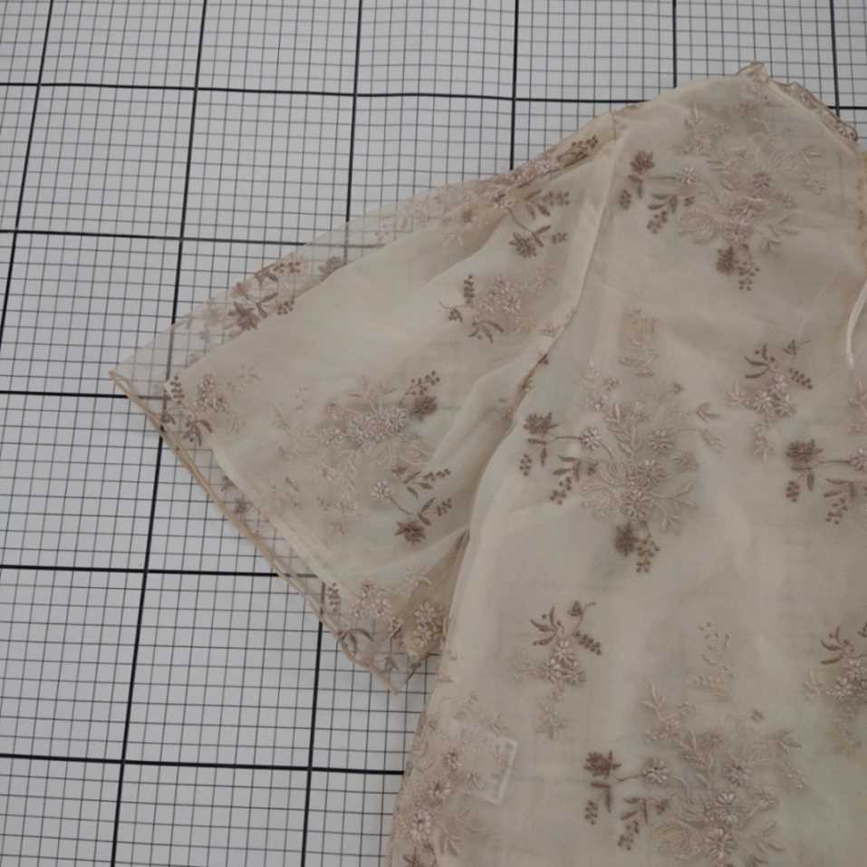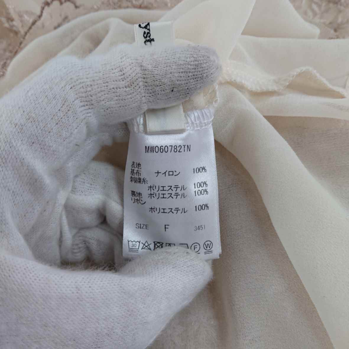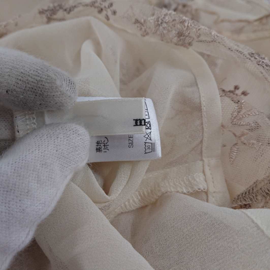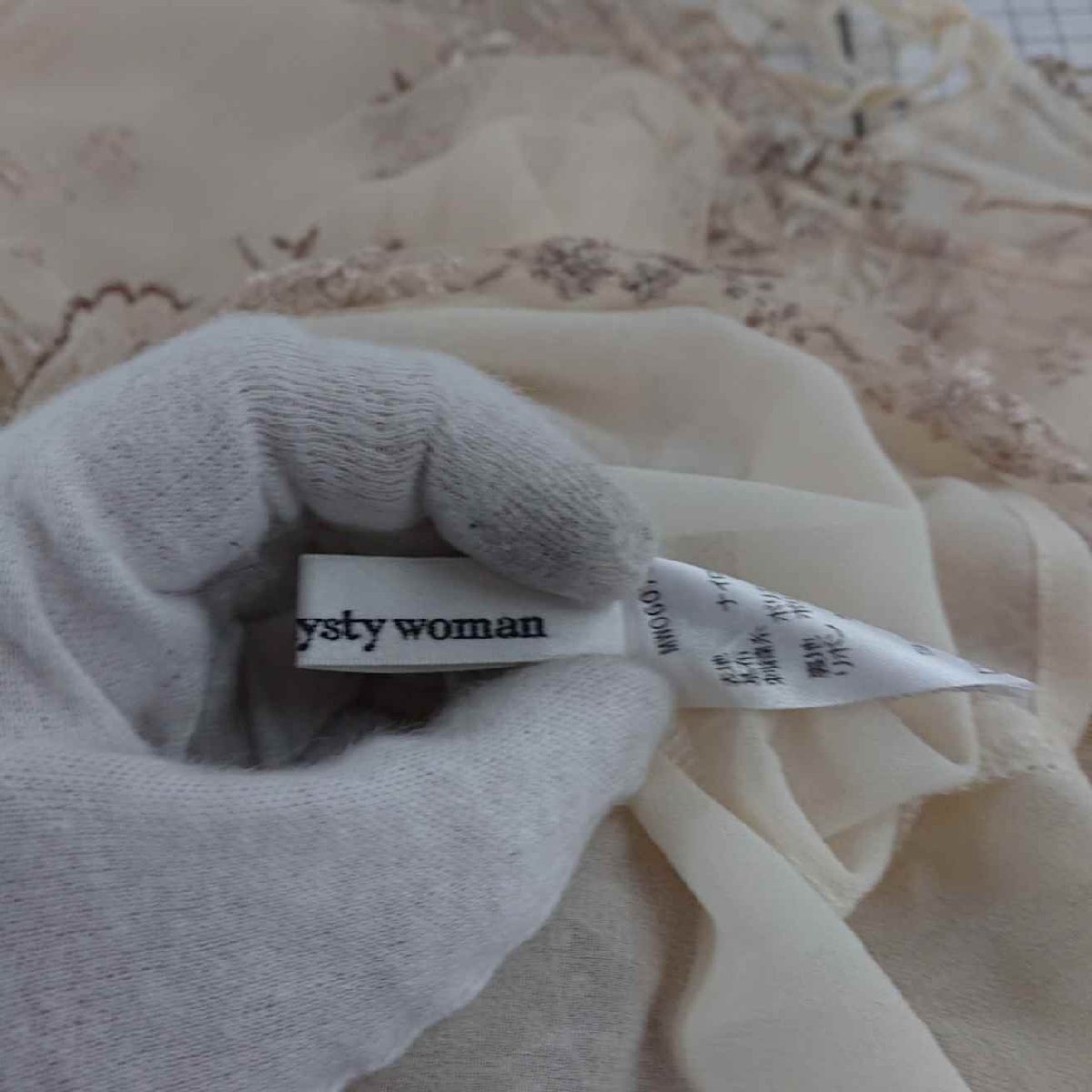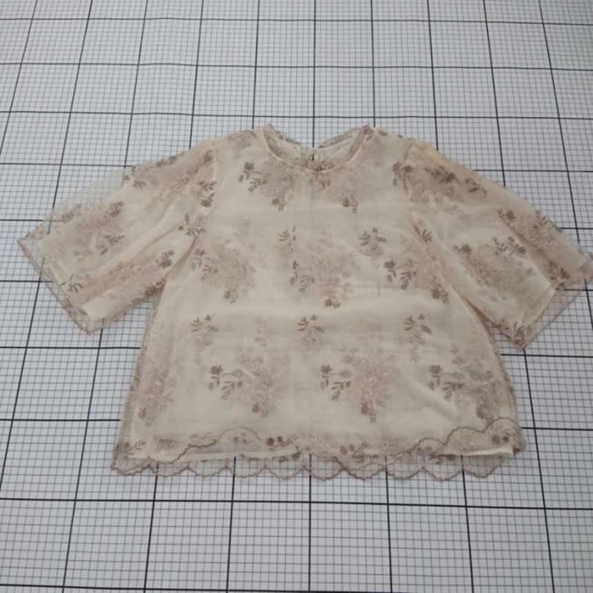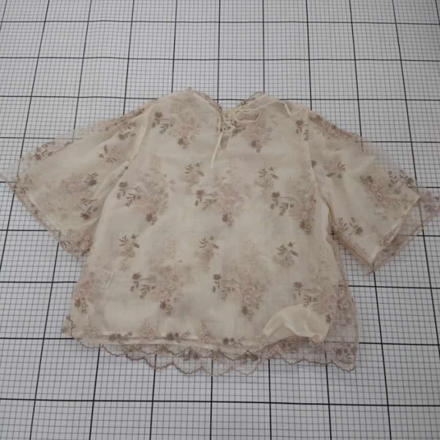 ◇ ⊂ mysty woman ミスティウーマン レース 花柄刺? 五分袖 ブラウス サイズF アイボリー ベージュ系 レディース メンズ E