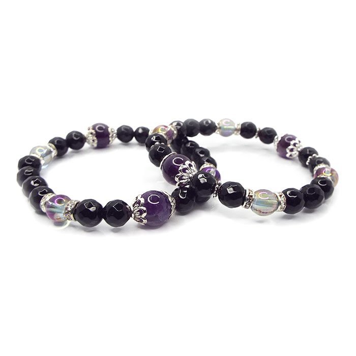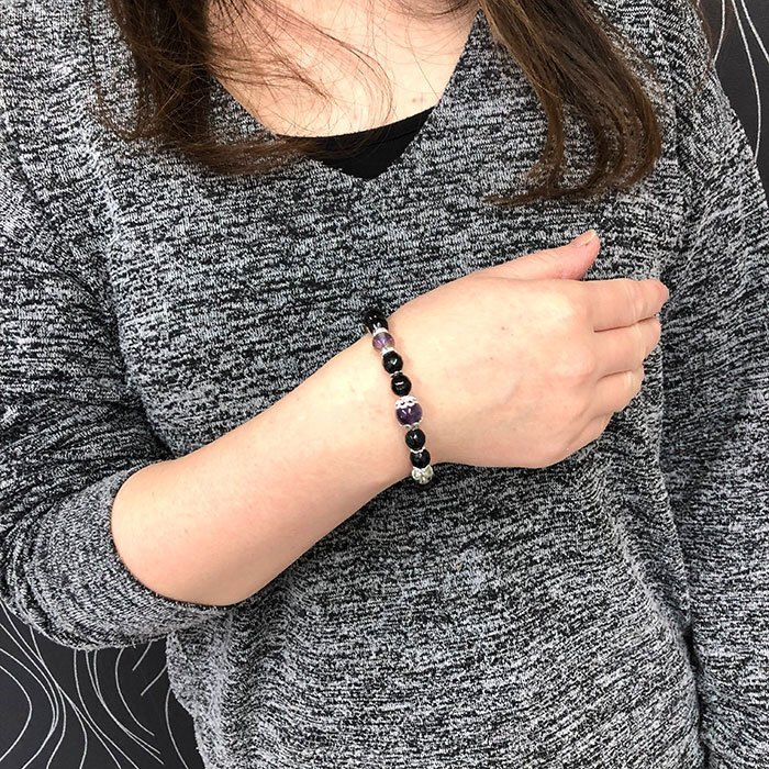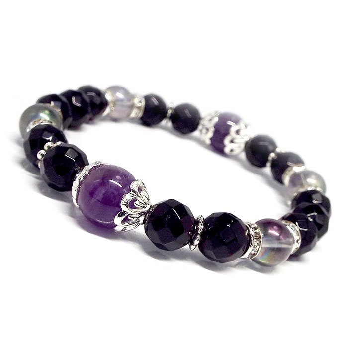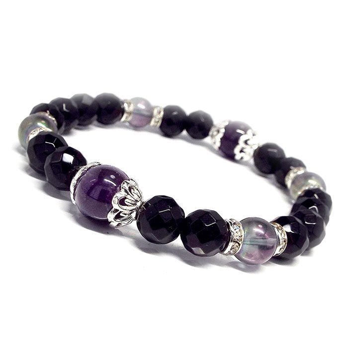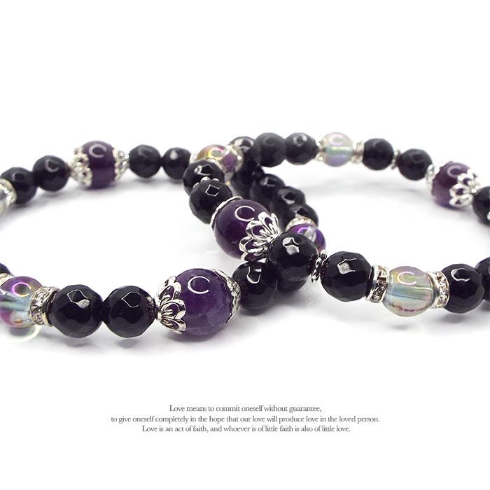 | 【STONE KITCHEN 天然石 パワーストーン】 人気のメンズ寄りユニセックスなデザインだから ペアブレスレットとしておススメ☆ 2人で達成したい目標がある、2人の夢がある、 そんな2人にオススメのパワーストーンペアブレスレット♪ ペアブレスレットは、記念日、誕生日、クリスマス、 バレンタインデーなどのプレゼントとしても最適♪ 意志を強くし誘惑に負けないようサポートしてくれる オニキスとアメジストの組み合わせは 大切な方への浮気防止におススメ♪ カッコいいペアブレスレットで心も繋ぎ合おう☆ サイズ:アメジスト 10mm オニキスカット 8mm オーラ水晶 8mm レディース 内周:約16cm メンズ 内周:約17.5cm ペア セット 注意事項 ※金属部分は汗や汚れ等で変色する場合がございます。気になる場合は金属磨きや布等で軽くふき取る事をおすすめします。 ※石の種類によっては、艶を引き出すことを目的として、ワックスや着色加工がされているものもあります。 ※表示のサイズは必ずしも最大値・最小値のサイズのものが入っているわけではございません。 ※天然石のため同じものでも色味・模様などが異なります。 ※照明の具合で実際とは色合いが異なる場合がございます。 また、天然素材特有のクラック・内包物を有する場合がございます。予めご了承下さい。 | |