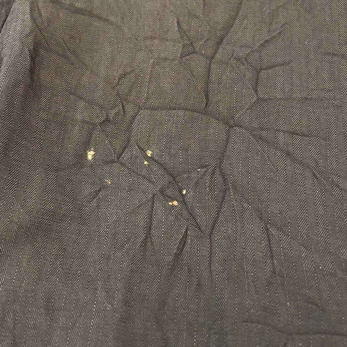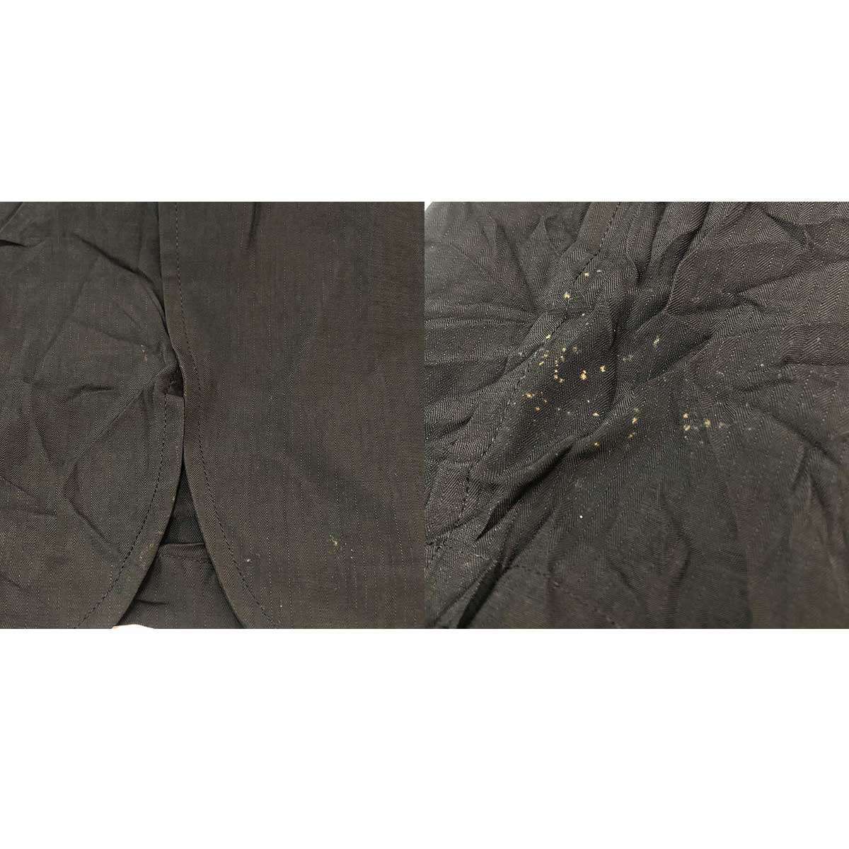全体的に重度のシワ、肩に色落ち・色抜け、背面裾に小穴が数箇所、所々に汚れがございます。