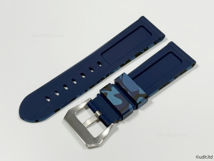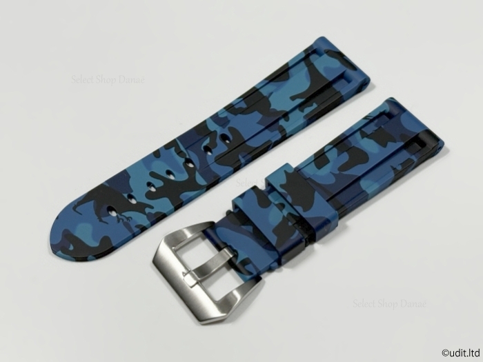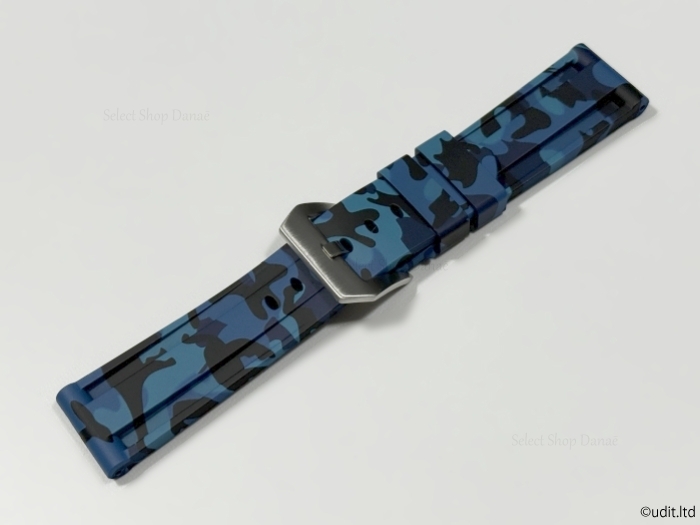 ラグ幅24mm パネライ対応 腕時計ラバーベルト ブルー迷彩 カモフラージュ 時計用バンド ルミノール マリーナ ラジオミール等に
