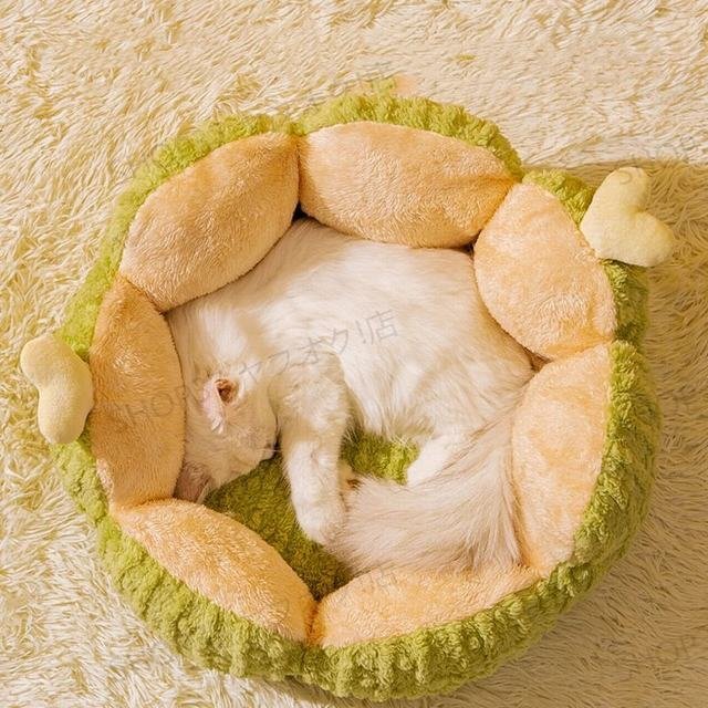 安心な素材を使用しております。柔らかい生地のフチは空間を暖かくし、ペットが頭を乗せられる快適なヘッドレストとしても機能します。柔らかい生地で空間を暖かくし、手足が伸ばしやすく,もっちりとした感触の柔らかベッドがネコと犬の体をやさしく包まれ、ふんわり支えます。