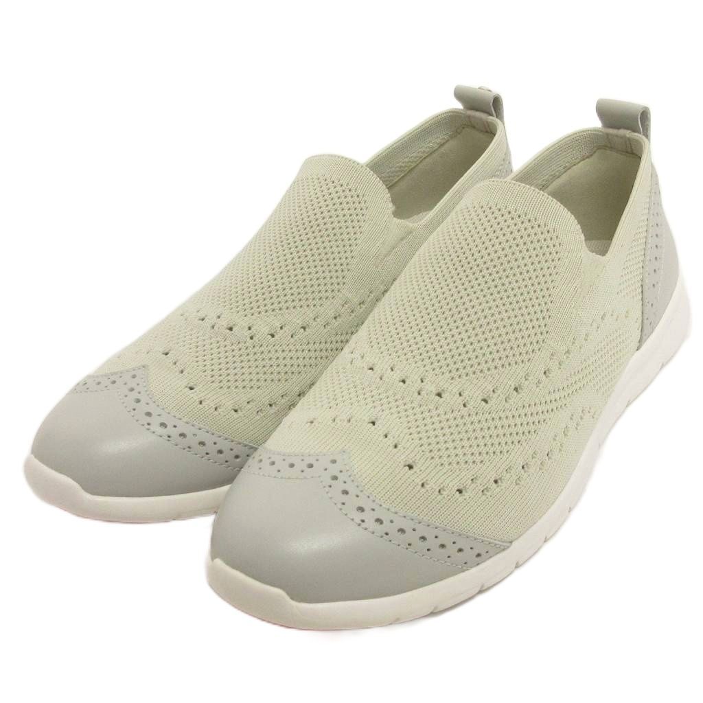 ヒミコ 卑弥呼 美品 ニットスリッポン スニーカー ウイングチップ 123004 ライトグレー 24.0cm レディース