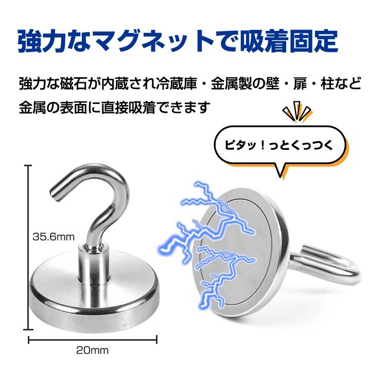 ◆超強力磁石フック 5個セット マグネットフック 耐荷重12kg 磁気吸着 メッキ加工 耐食性 錆びにくい ぶら下げ収納 壁掛け 固定式 玄関先/キッチン/冷蔵庫/浴室に MFE20S5