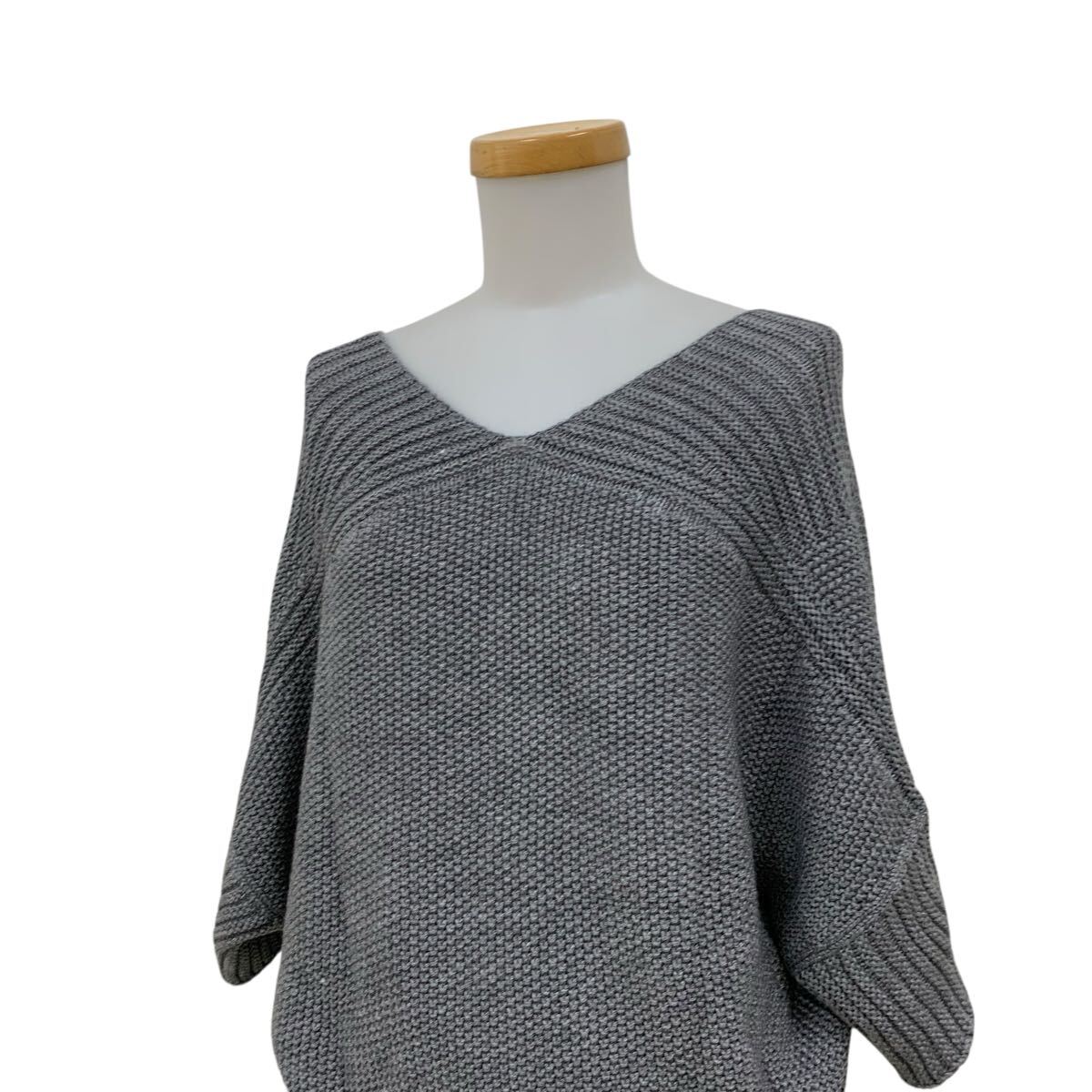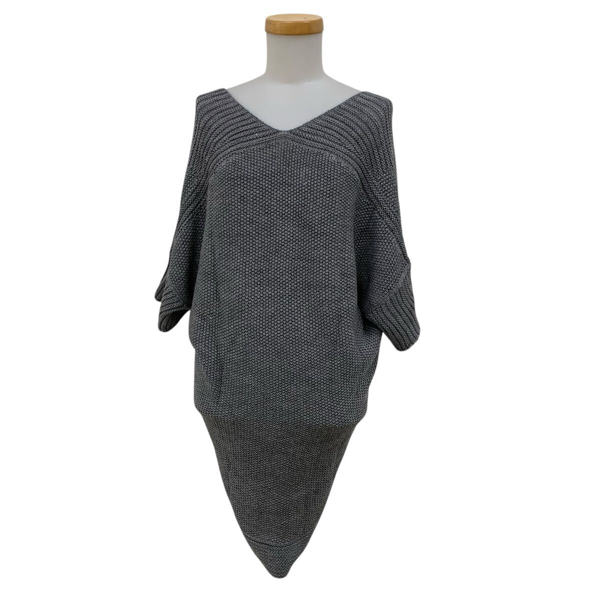 11NC336-52 未使用品 BOSCH ボッシュ ウール混 半袖 五分袖 ニット ワンピース チュニック ワンピ レディース 38 グレー