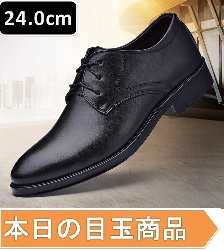 本日の目玉 ☆ メンズ ビジネス レザー シューズ ブラック サイズ 24.0cm 革靴 靴 カジュアル 屈曲性 通勤 軽量 【226】