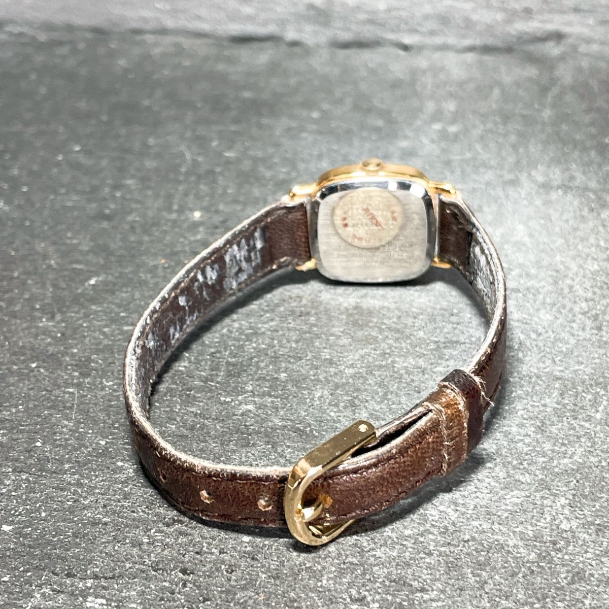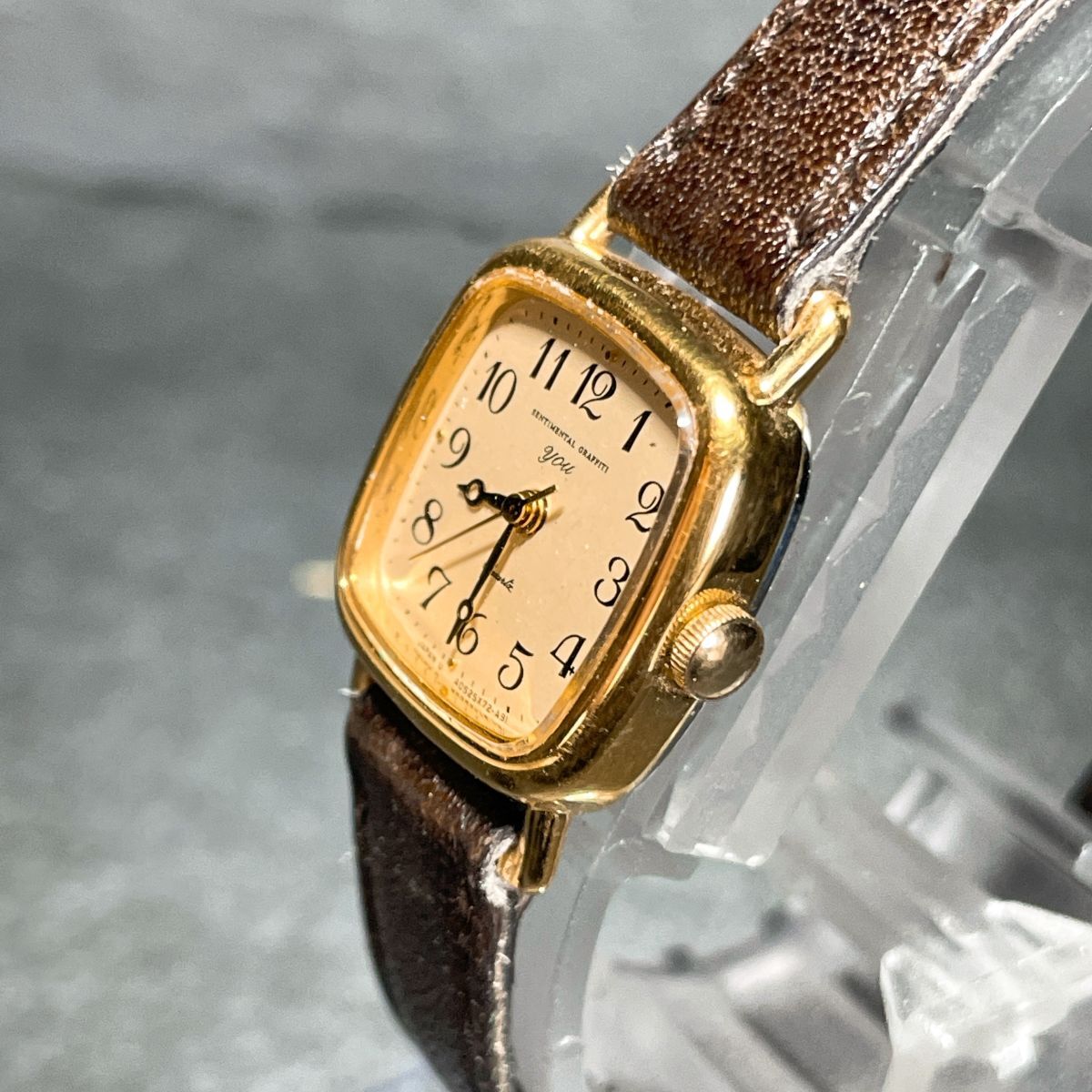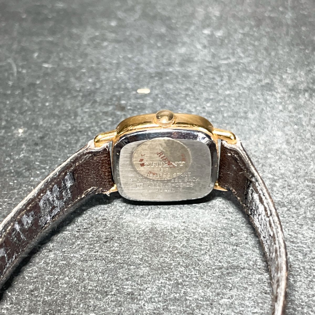 美品 ORIENT オリエント you A055X7-20 腕時計 アナログ クオーツ 3針 ゴールド文字盤 スクエア レザーバンド ブラック ステンレススチール