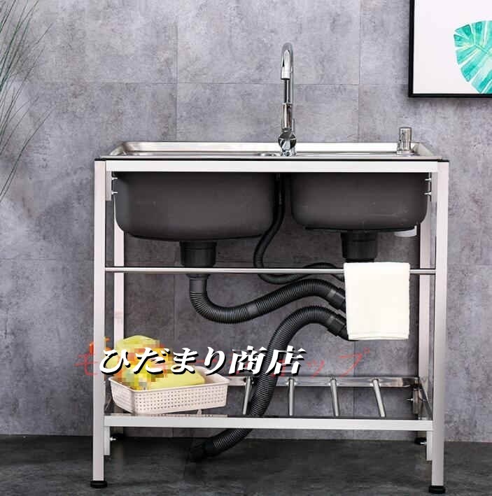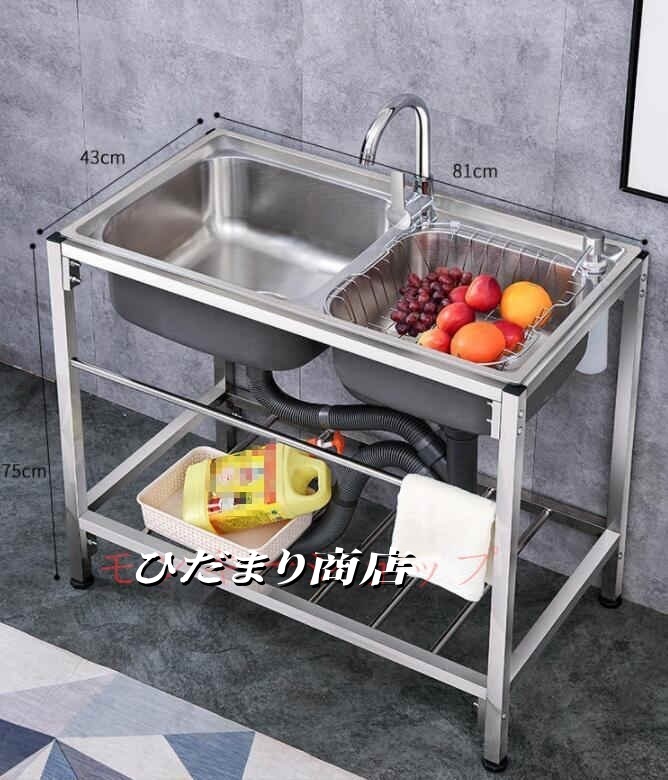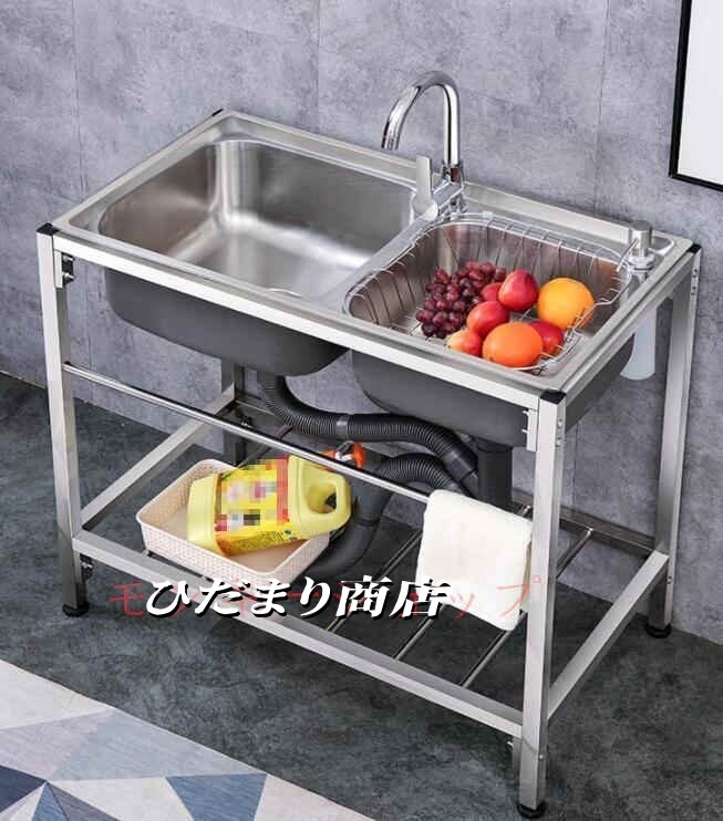 品質保証★ ステンレス製流し台 ダブルシンク台所  食器洗いシンク 野菜シンク 肥厚 超大容量 便利 蛇口水栓/スタンド付き