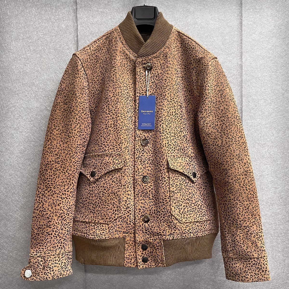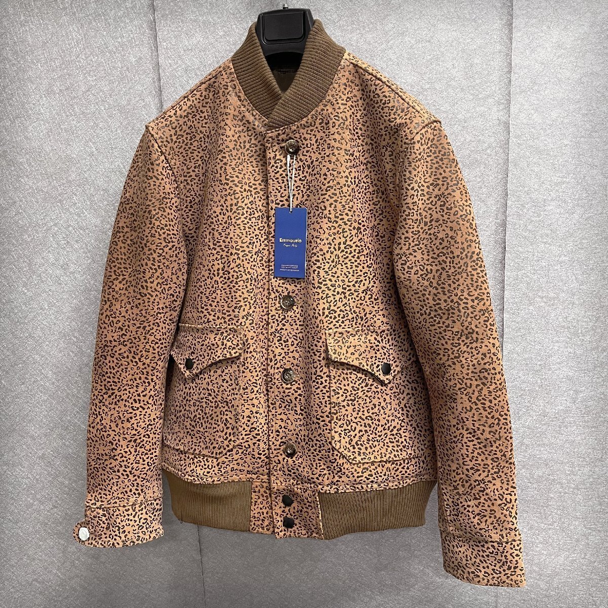 個性・レザージャケット 定価16万◆Emmauela・イタリア・ミラノ発◆最高級牛革 ヒョウ柄 重厚 革ジャン ライダース オートバイ L/48サイズ