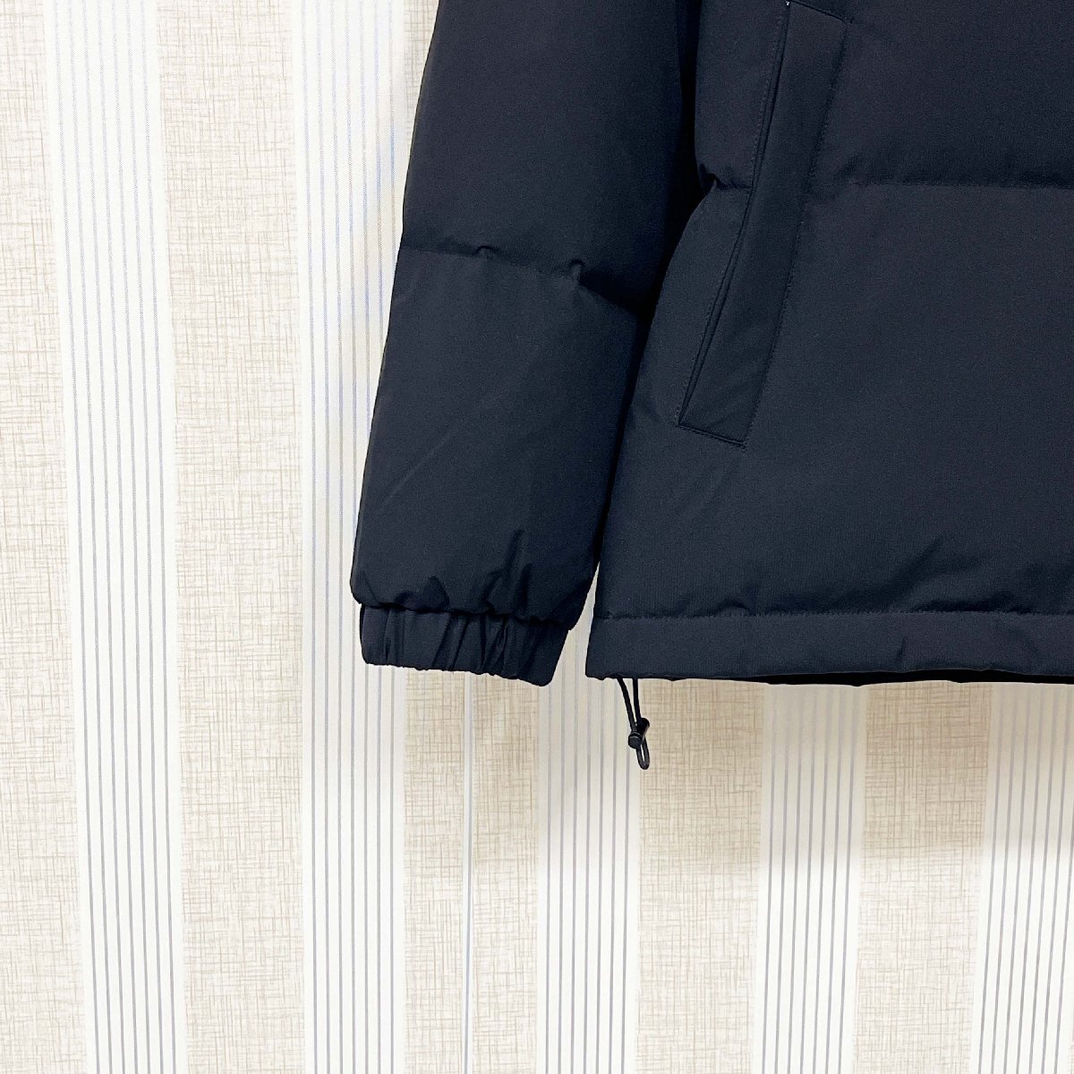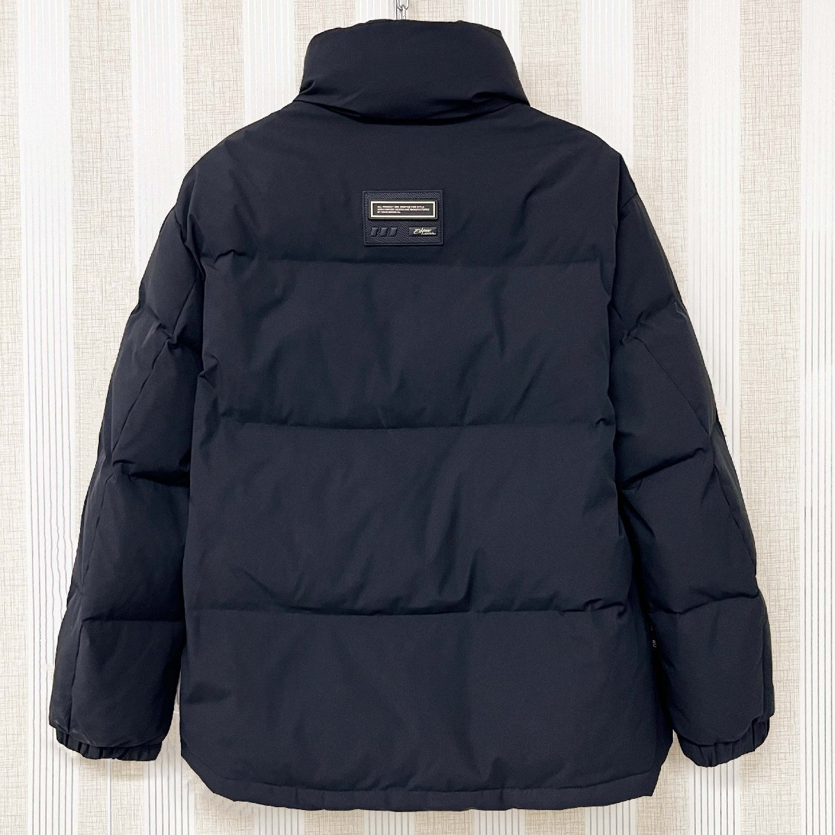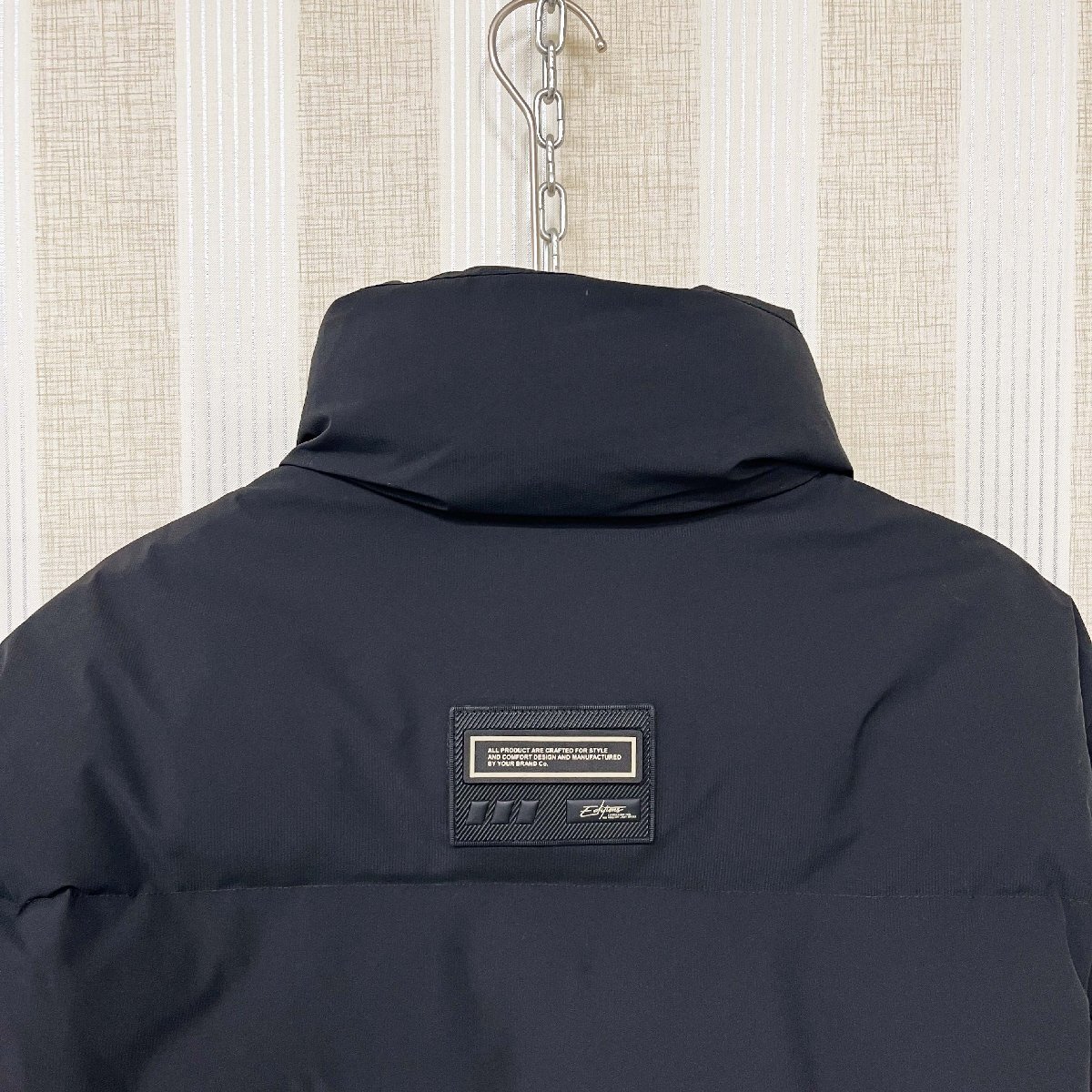 ゆったりとしたシルエットで、どんな体型にもフィット。立ち襟が首元をしっかりとカバーし、袖口のゴムと裾のドローコードが風の侵入を防ぎます。大きなポケットは収納力も抜群で、実用性とデザイン性を両立しています。背面のロゴやファスナー、金属ボタンなど、細部までこだわったディテールが全体の高級感を引き立てます。