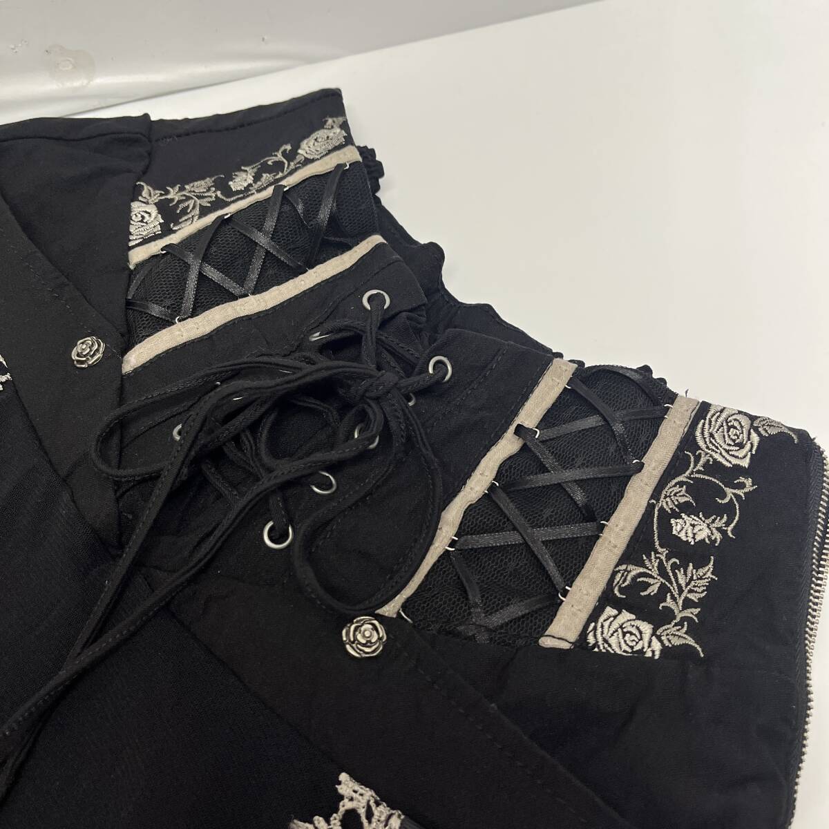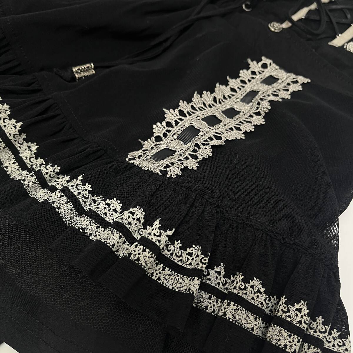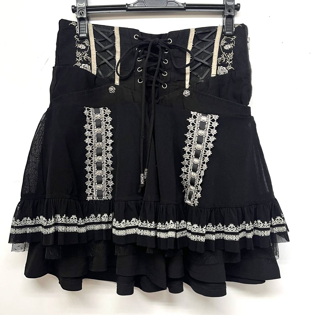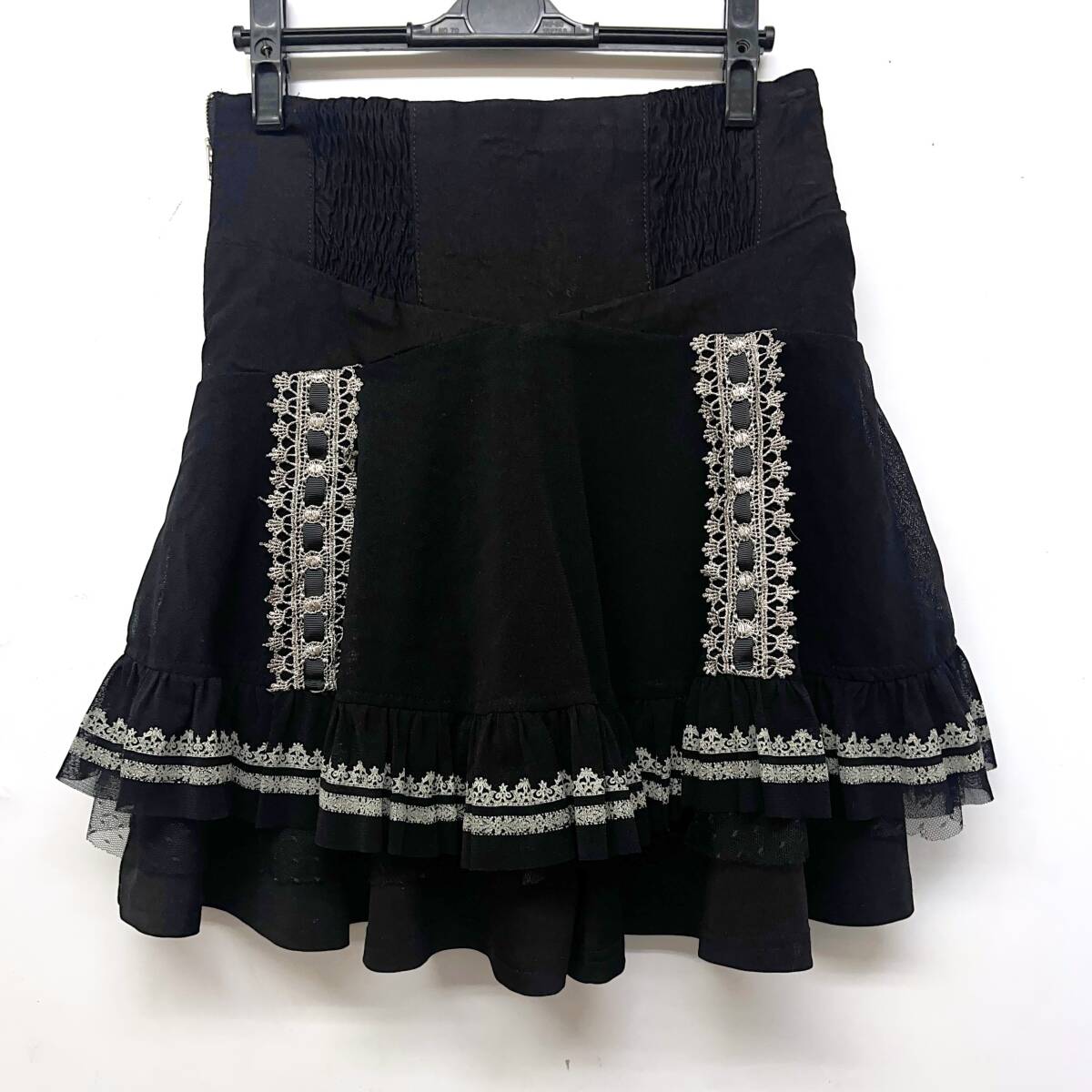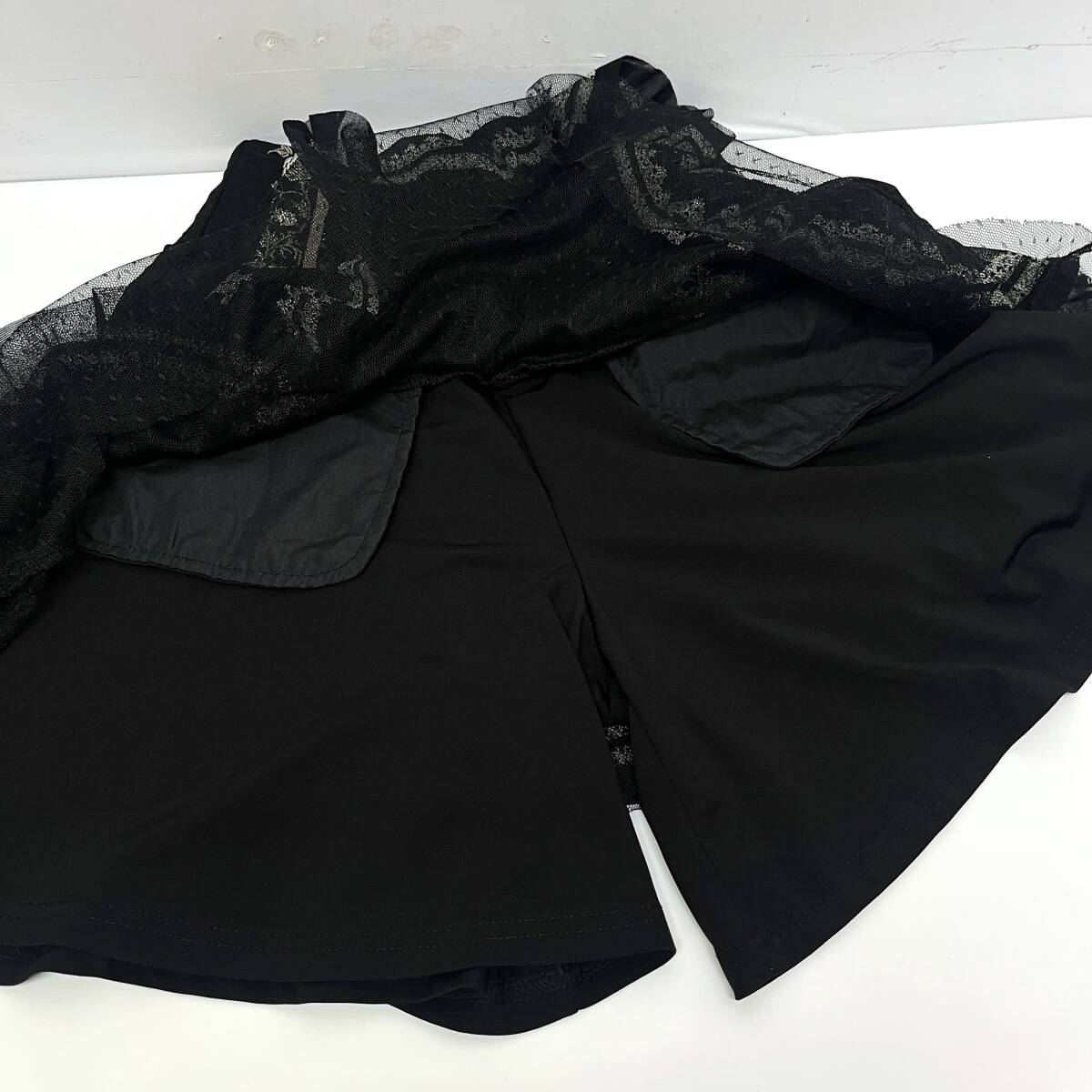(志)【美品】Ozz Oneste/オッズオネスト フリルスカパン スカートパンツ ブラック レース 黒 丈:約43cm ウエスト:約32cm(o)1121E