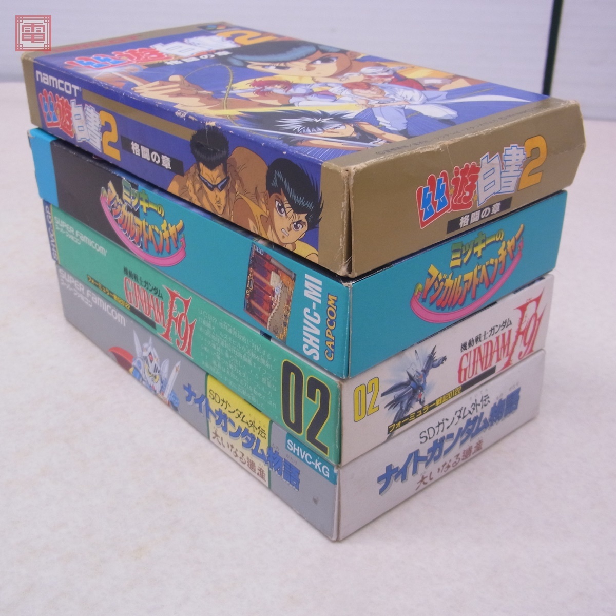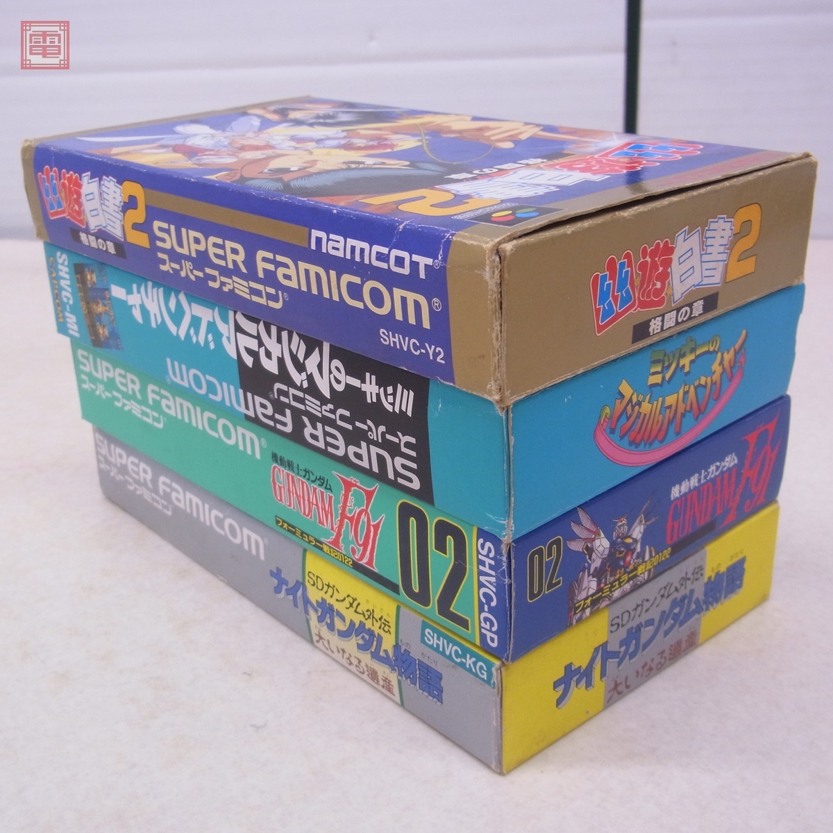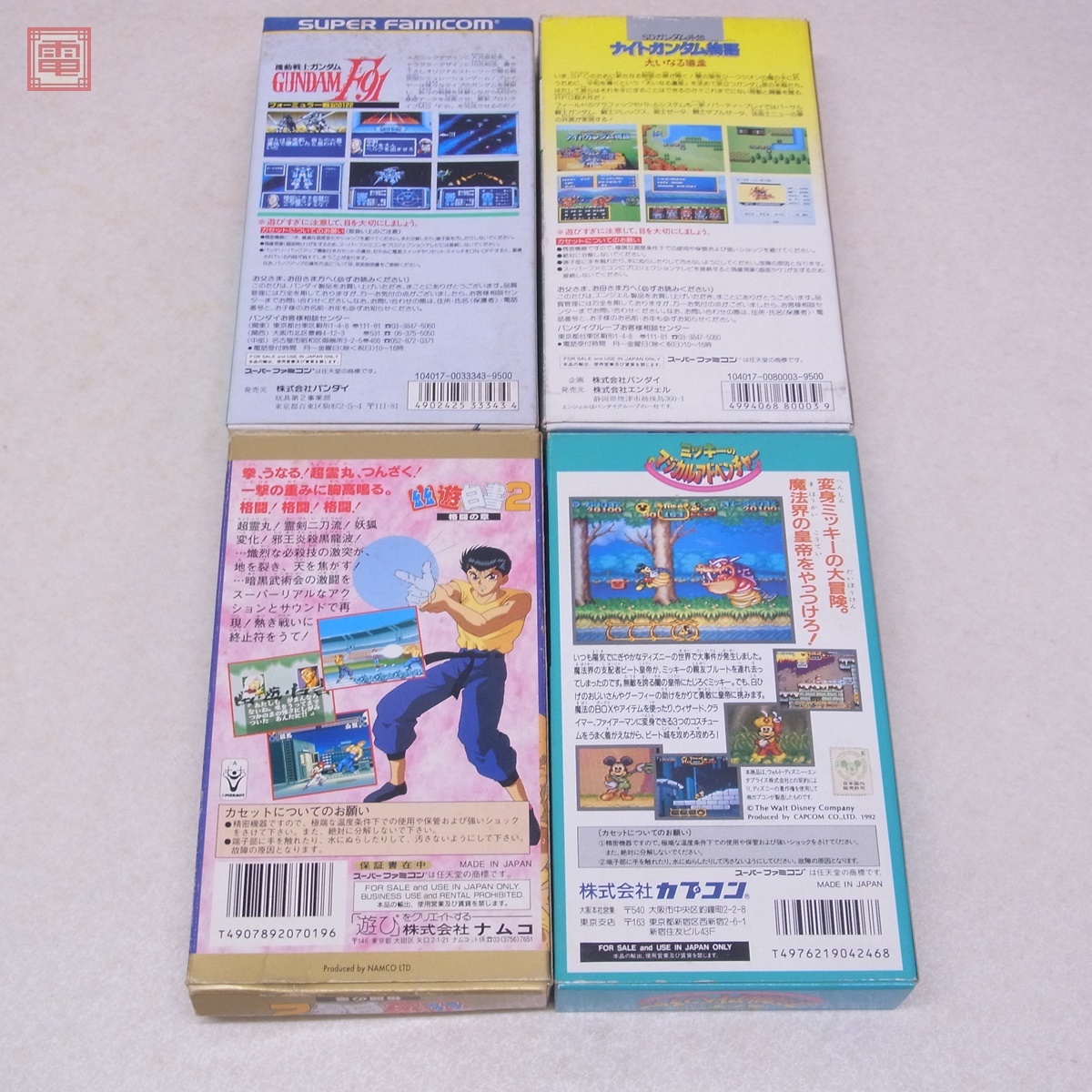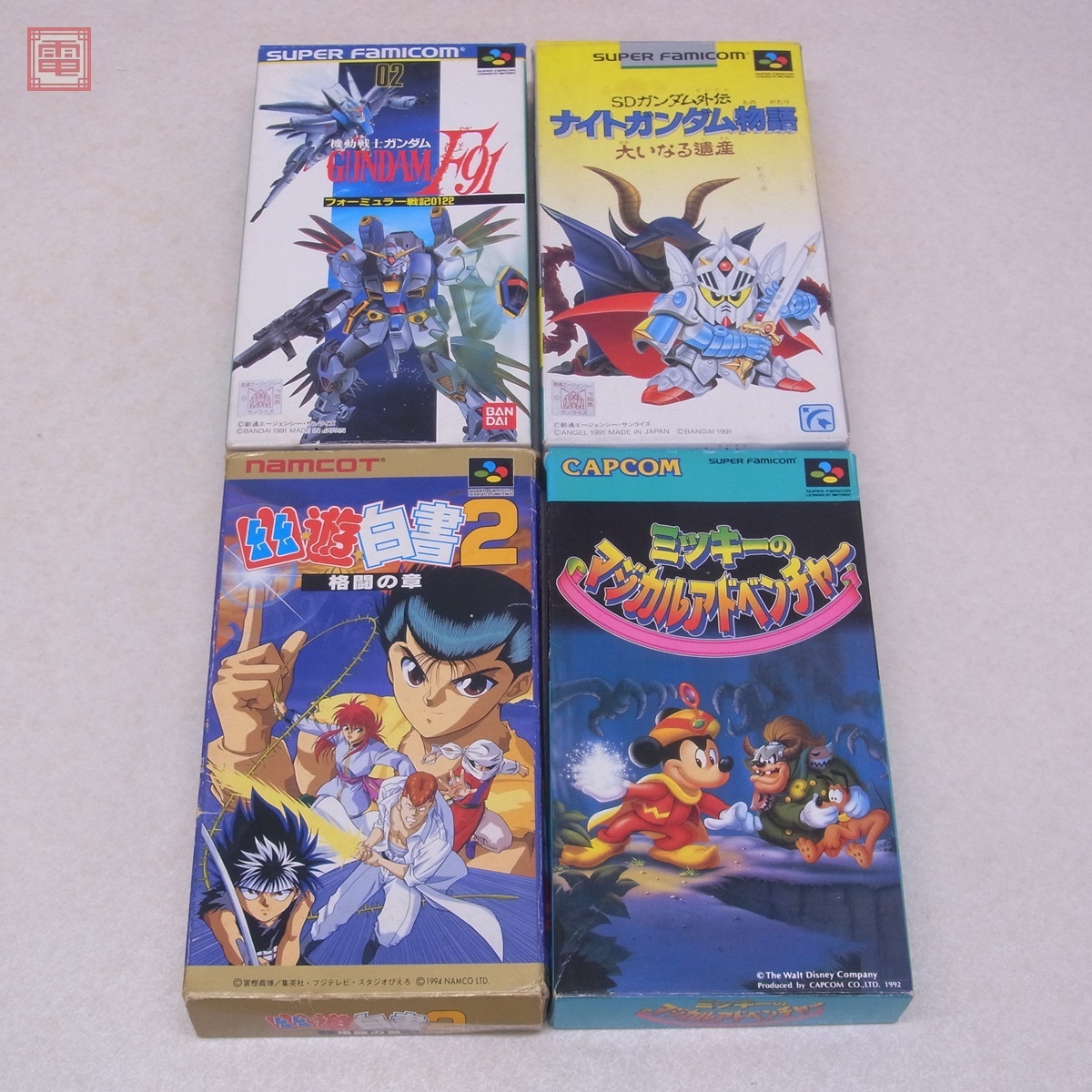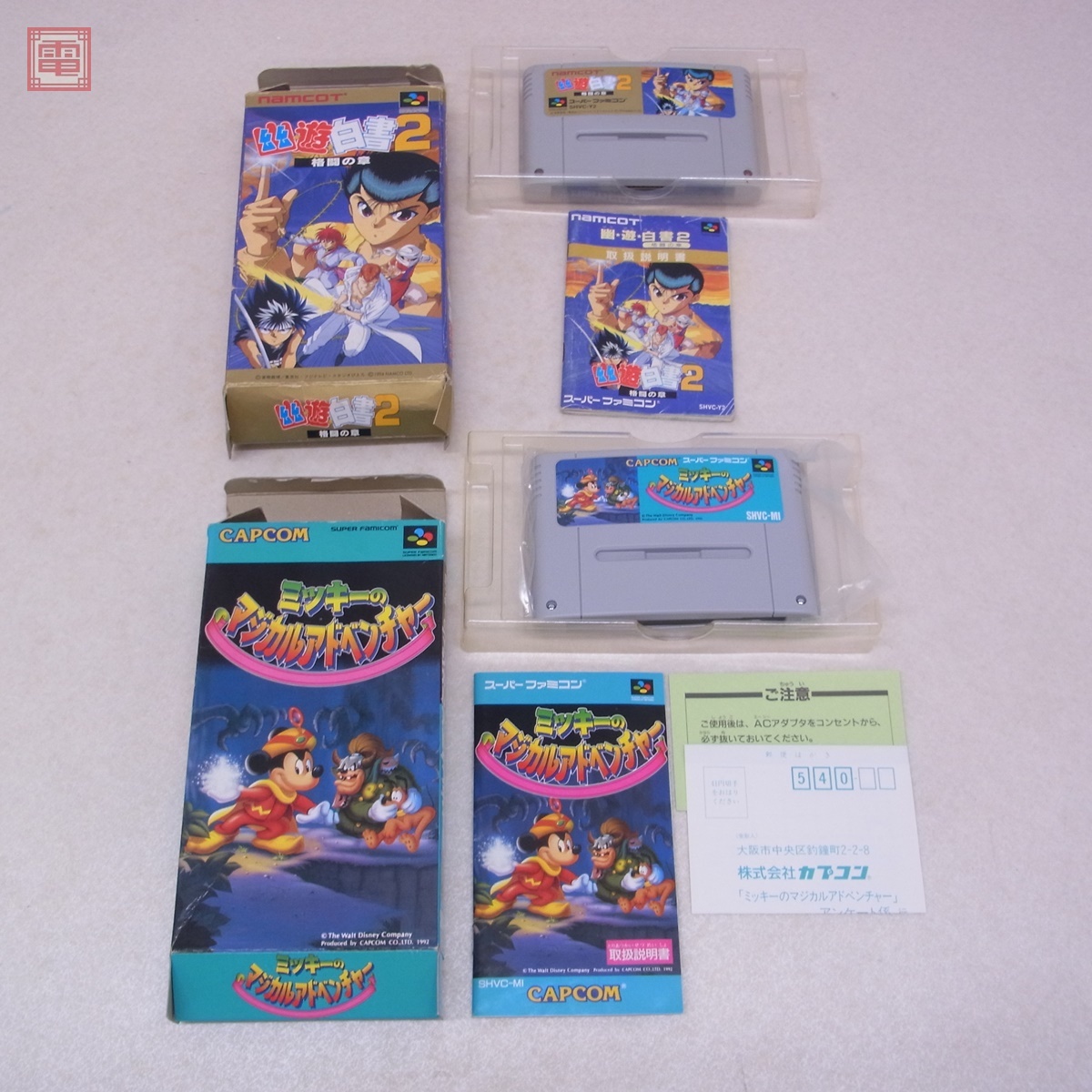 動作保証品 SFC スーファミ ミッキーのマジカルアドベンチャー/幽遊白書2 等 アニメ関連 まとめて 4本セット 箱説付 ダブりなし こちらの商品は動作保証品となりますので、一週間の動作保証をお付けします。 ■箱にスレ、汚れ、折れ、シミ、ヤケ、キズがあります。 ■取扱説明書にスレ、汚れ、シミ、ヤケ、ホチキス部のサビがあります。 ■カセットにスレ、キズ、汚れ、シミ、ヤケ、黄ばみがあります。 ■写真のものが全てです。付属物の有無や状態については写真からご判断ください。 ■付属物については細かいチェックはしておりませんので、万が一、欠品があったり余計な物が入っていたとしてもご了承ください。 ■商品到着後、当店の保証期間中は、商品及び箱や取説、付属品などを1つでも廃棄や破損をしないようにお願い致します。廃棄や破損をした場合、商品に問題があった場合でも対応や返金などの対処ができなくなります。 ■商品によりますが、発売されてから10年以上経過している中古品である事をご理解頂いた上でご入札をお願い致します。なお、新品や美品、また特記事項がある場合は別途明記します。 | |||