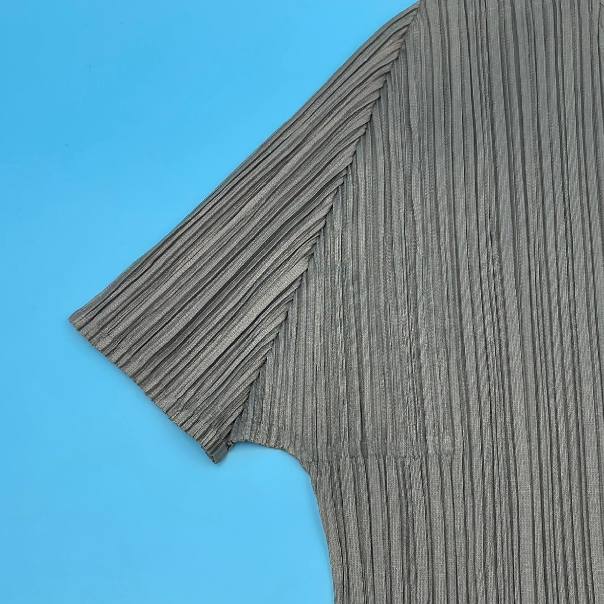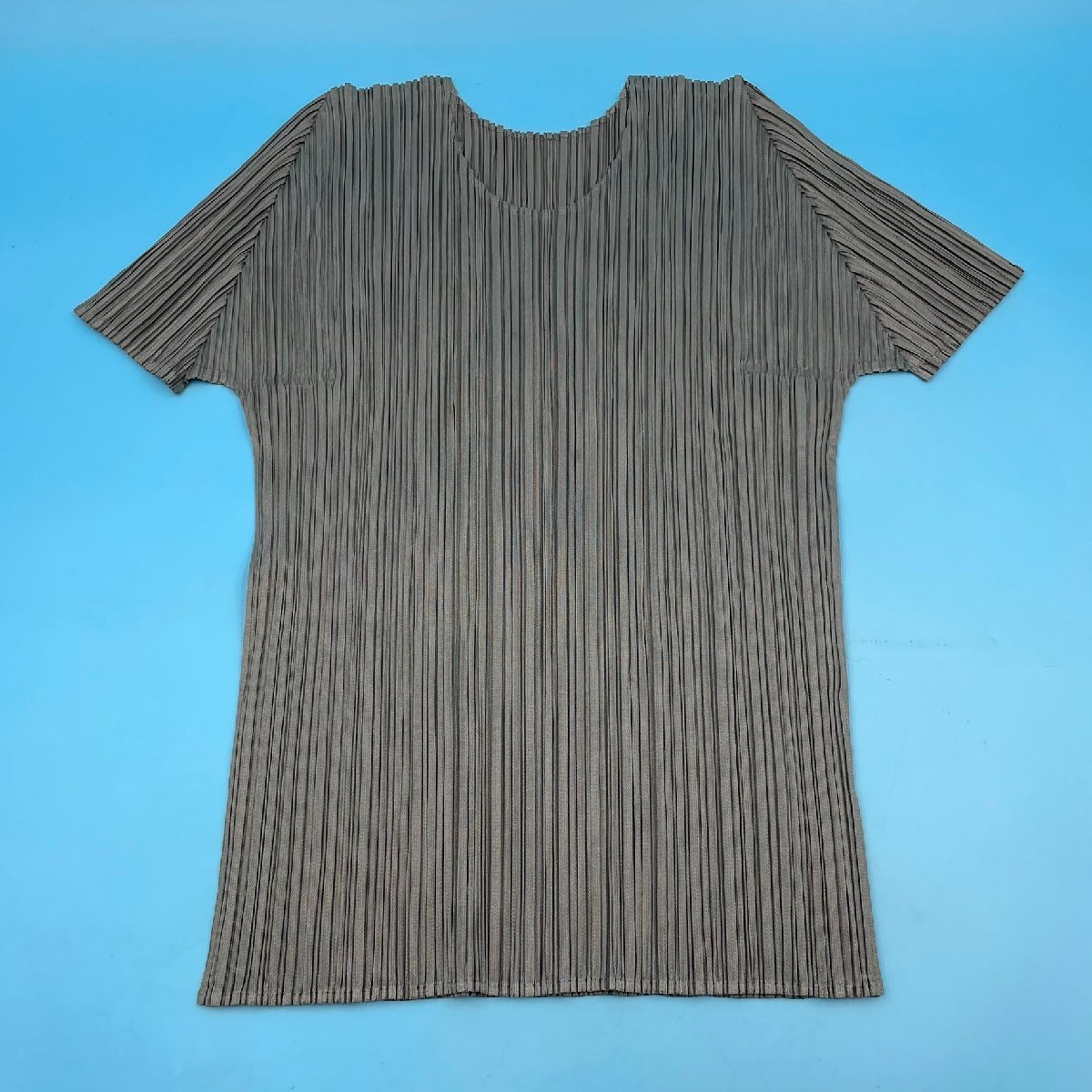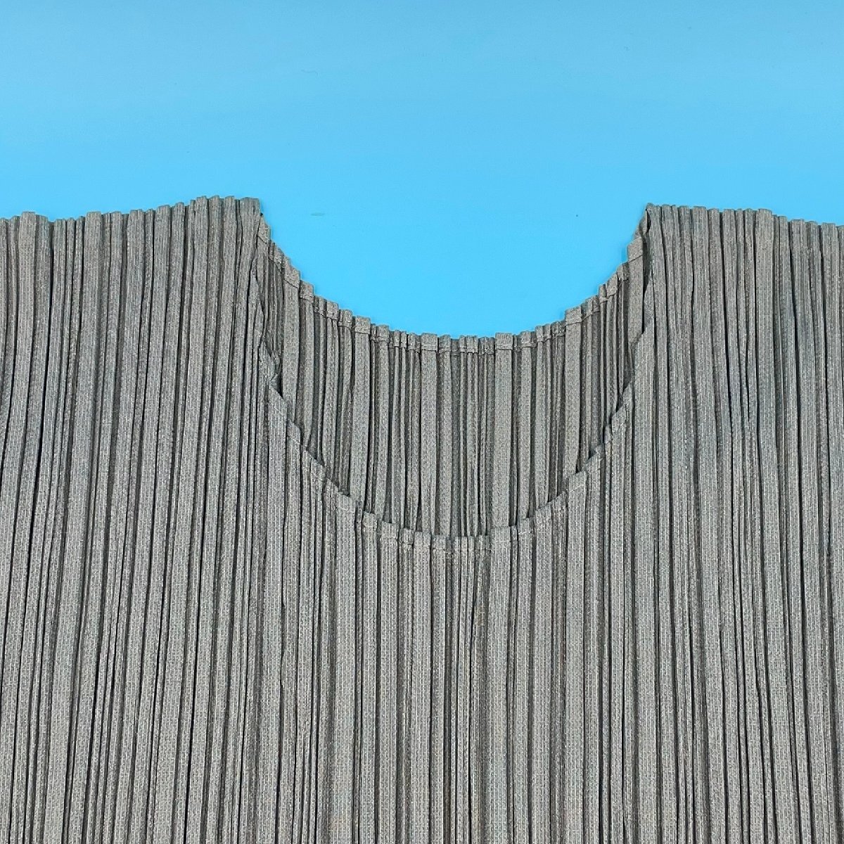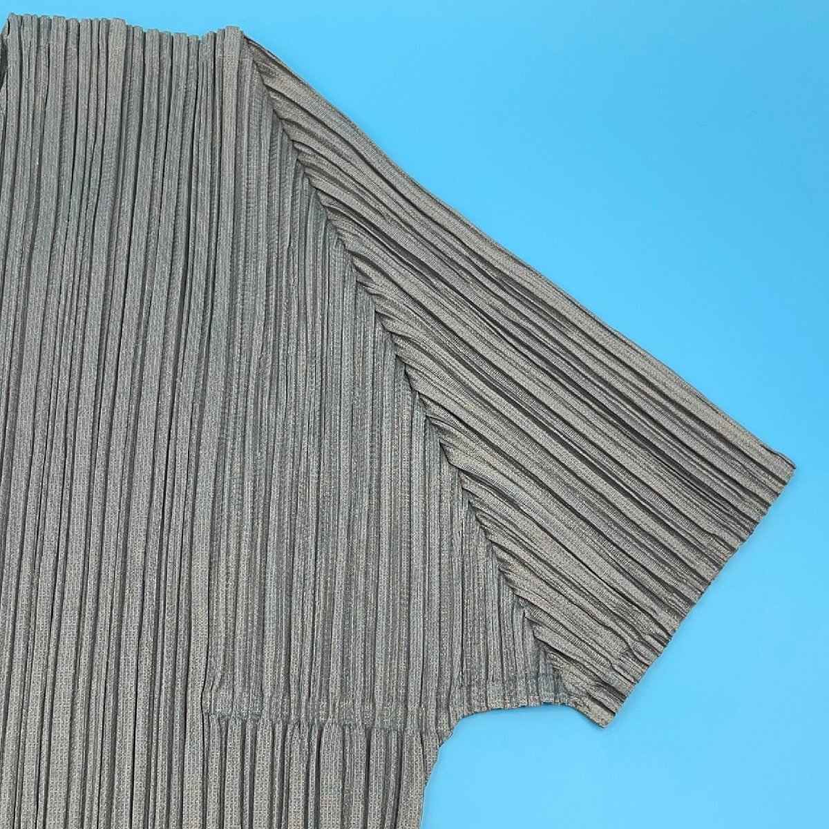 【20841Q084】カットソー PLEATS PLEASE プリーツプリーズ イッセイミヤケ 半袖 サイズ:3 グレー 灰色 無地 トップス 丸首 おしゃれ