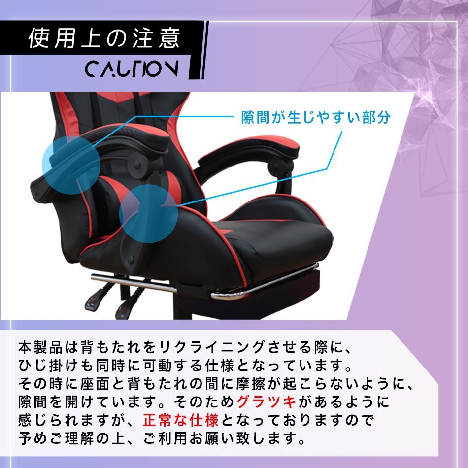 合成レザー素材を使用したハイバックチェアです。 体をすっぽり包み込むバケットシートデザインで、綺麗な姿勢を保ちます。 頭部と腰部をサポートするクッション付きで、長時間座りっぱなしでも疲れにくいフィット感です。 背もたれは最大約120度まで、座面の高さは最大約13cmまで スムーズに調節できます。 ゲーミングチェアとしての使用はもちろんのこと、 オフィスや在宅ワークで使うも良し! 作業用、配信をスタートするにも最適のチェアです! 【商品仕様】 カラー:ピンク サイズ ・本体:(約)幅620×奥行580×高さ1140~1270mm 耐荷重:約100kg その他 ・肘付タイプ ・格納式フットレスト付き ・可動キャスター付き ・360度回転 ・昇降機能付き ・リクライニング機能付き ・ロッキング機能付き 【注意事項】 ・お客様組立の商品です。 ・組立て方や商品の個体差により、サイズは若干差異が生じる場合がございます。予めご了承下さい。 ・使用環境によりキャスターの潤滑具合が悪くなることがあります。ご了承下さい。 ・商品は、モニターによって色合いが異なって見える場合があります。 ・仕様・デザインは改良のため予告なく変更することがあります。 保証期間 7日間 ※使用開始時期や使用期間に関わらず、お買い上げ日から7日間です。 商品到着後から7日を過ぎますと、交換の際の往復送料はお客様負担となりますのでご了承ください。 場合によっては対応出来ないケースもございます。 |