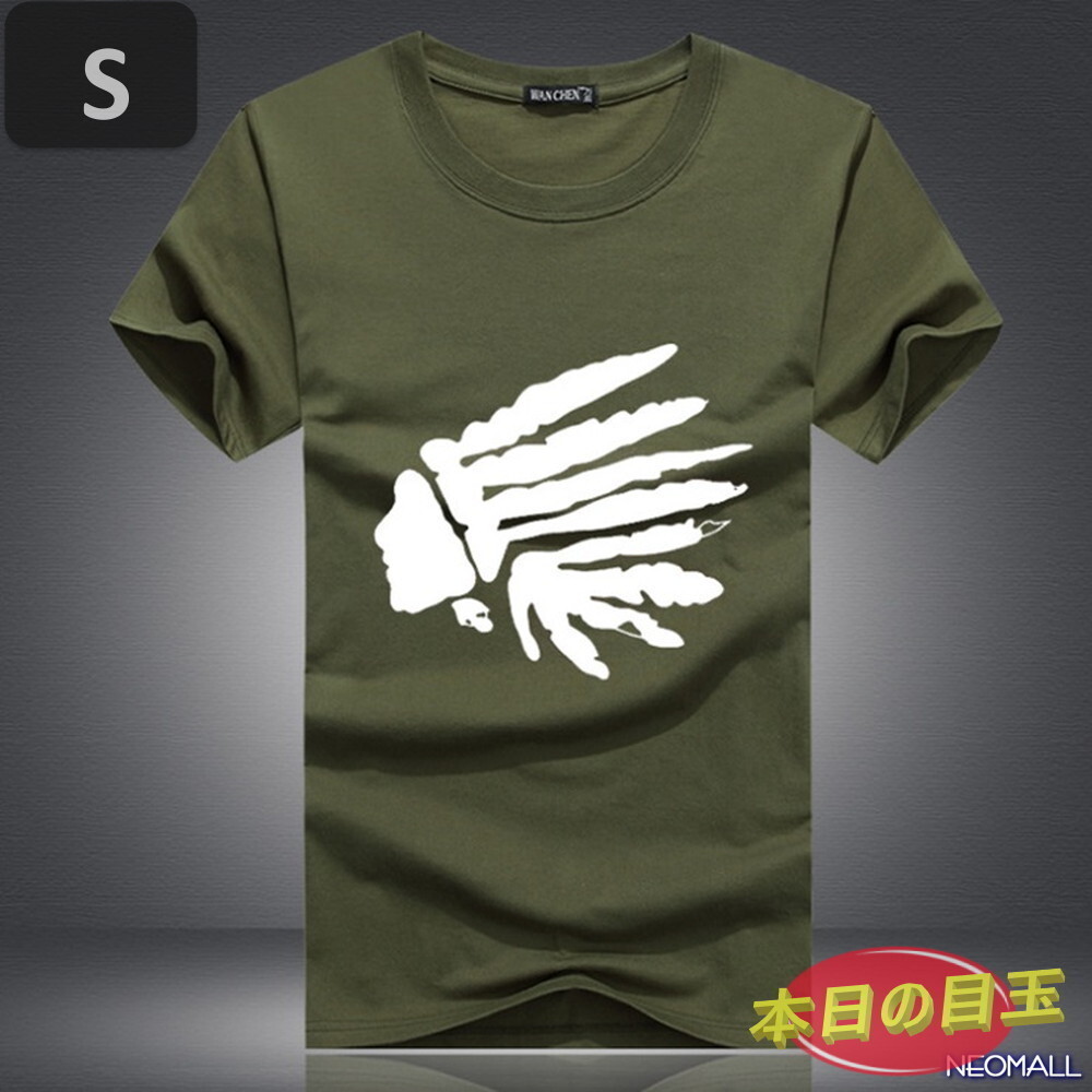 本日のお買得 ☆ 丸首 半袖 Tシャツ【462】 グリーン Sサイズ トップス シャツ シンプル イラスト デザイン 春夏