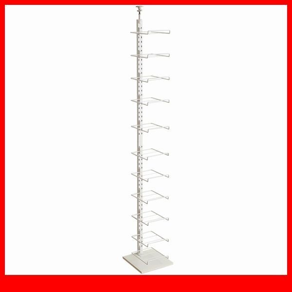 | 見せる収納の突っ張りシューズラック11段 お気に入りの靴を飾るディスプレイラックとしても、靴を収納するためのシューズラックとしてもお使いいただけます。 棚の高さ調節が可能なので、ハイカットやロングブーツでも容易に収納ができて便利です。 |