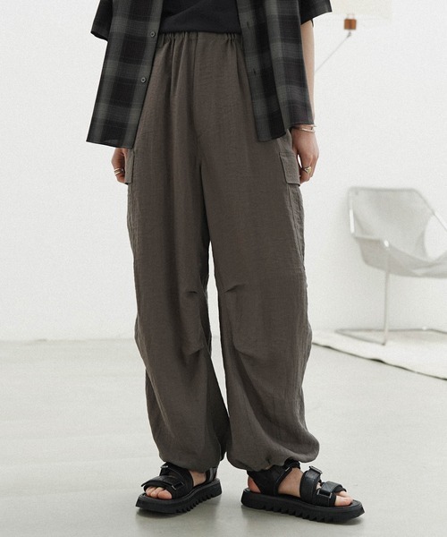 キーワード:カーゴパンツ メンズ ウエストゴム ストレート ハイウエスト フルレングス ワイドパンツ 無地