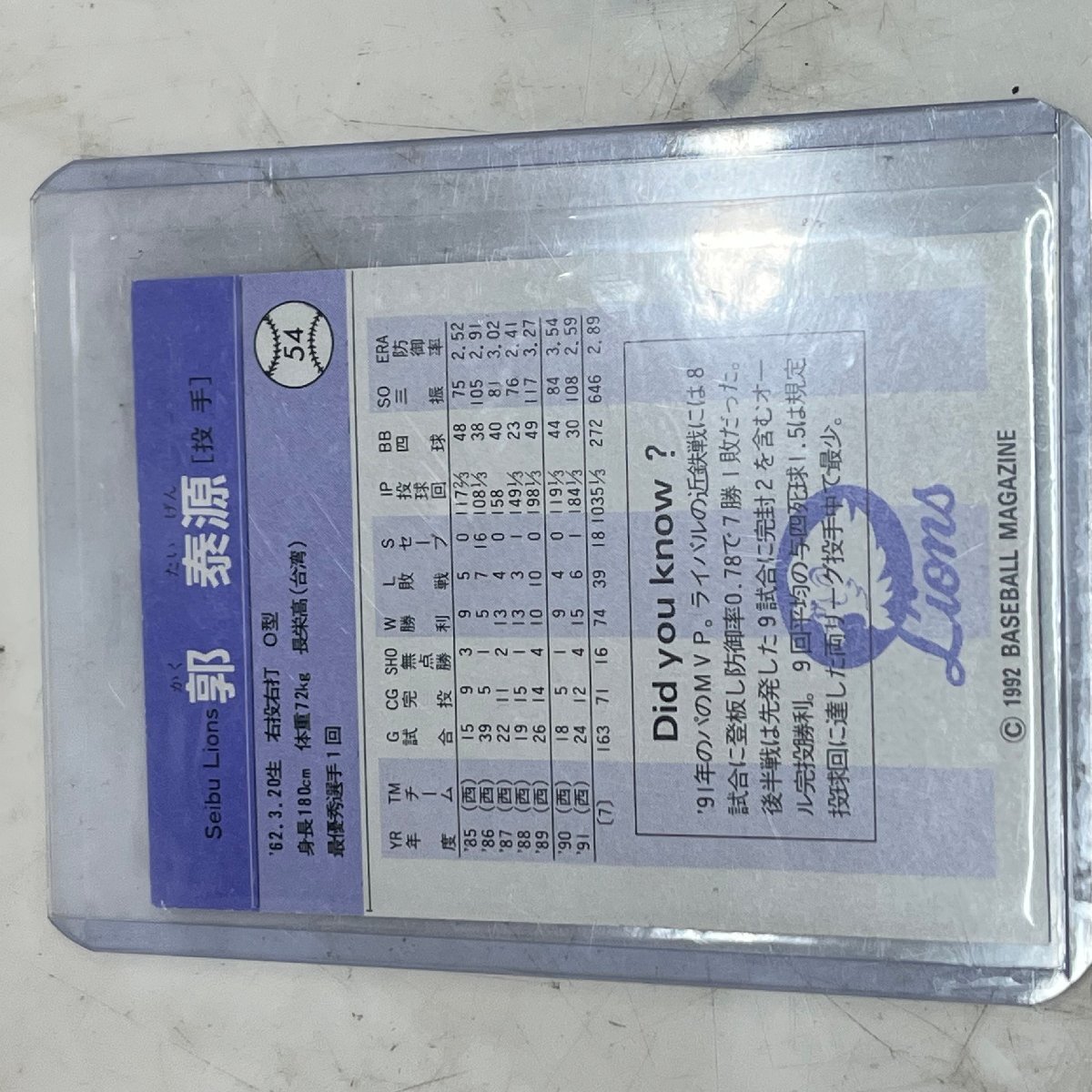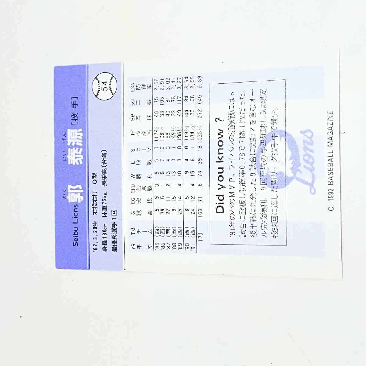 | =M= 郭泰源 直筆サイン カード 西武ライオンズ 1992年 当時物 コレクション 希少品 =B-251138 | ||