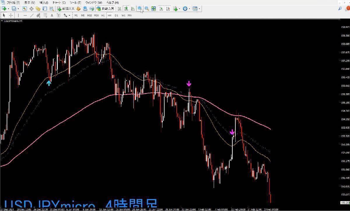 ※日足との相関性でのツールですので、4時間足以外では使用しないでください。